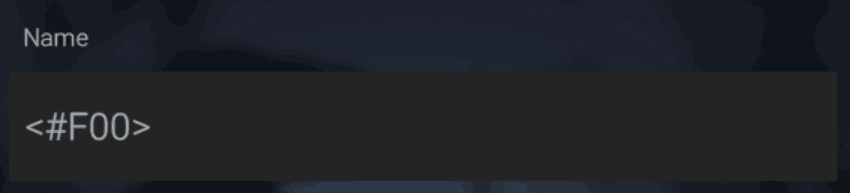 《战斗大师》的用户名有25个字符的限制,使用此功能时,你的名字长度会受到限制。例如,使用十六进制代码意味着你只有10个额外字符来输入实际名字。 请明智使用!像红色或灰色这类名称较短的颜色能给你多一点余地,但这种方法仍然会严重限制你的字符数量。 更改用户名(简短版) 还有更快捷的改名方法! 只需输入<#FFF>,并将FFF替换为你选择的3位十六进制代码,文本框就会允许你输入彩色文字!这种方式更简短,能让你为用户名上色,同时还留有足够空间输入用户名。这里可以找到大量三位十六进制代码格式的颜色。例如,如果我想用红色但希望名称更长,可以输入:"<#F00>昵称",这样就能让用户名显示为红色,同时保留19个字符的可用空间,而不是使用较长命令时的仅14个字符。