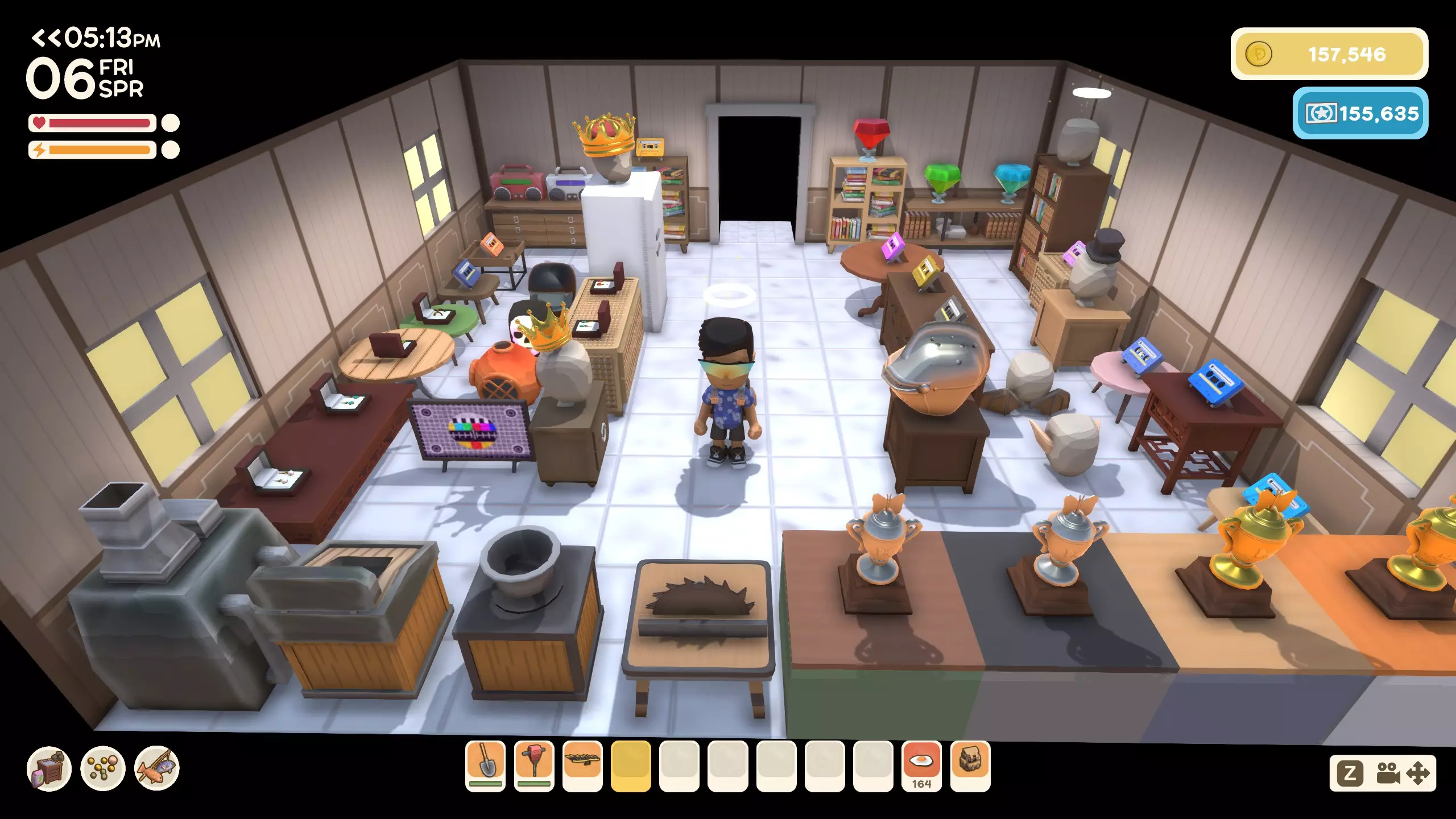 重复此操作最多四次,即可租出所有四间客房。你不必租出全部或任何一间客房。如何使用客房完全由你决定,但这是一种非常被动的赚钱方式。 要停止出租并驱逐租客,可与告示牌互动并选择停止出租选项。客房出租期间,你仍可直接进入,无需征得租客同意。这在大多数国家都是违法的,但在你的小镇却并非如此! 如何最大化租金 租金似乎取决于你在周三前放置在客房内的装饰品的价值。这意味着你可以在周二晚上添加物品,周三收取租金,然后将物品移走用于其他地方,之后在下周周二晚上再将其放回客房。物品增加的租金金额基于物品售价的百分比: 物品 租金增加百分比和丁克数 完美宝石 2.31% | 1,731 丁克 磁带 1.54% | 1,231 丁克 夜市珠宝 1.54% | 不定 夜市电视 6.02% | 34,615 丁克 奖杯 6.92% | 不定 设备(高炉、自动分类器、音箱等) 2.31% | 不定 家具 4.56% | 不定 服装/服饰 1.54% | 不定 开发者预计会继续调整和热修复租金计算方式。因此,不要过于依赖任何装饰系统。 未升级的空租赁房屋的基础租金为每周 1,750 丁克。你可以在维基上查询各种家具、服装和装饰品的价值。极简风格家具总体上往往最值钱,所以如果你想保持装饰的主题或连贯性,那这一系列是你的最佳选择。不过,如果你想获得极高的租金,家具的贡献会非常小,因为它们的售价较低,所以不必担心这一点。此外,游戏似乎只计算每种装饰品中的一个,因此你不能在客房里重复放置多个北欧床。我尝试放置两个金鱼奖杯,租金和放一个时相同。经过大量测试,以下物品会纳入租金计算: 家具,例如已放置的装饰品,如毛绒玩具、奖杯、磁带和音箱。 完美宝石可作为装饰品放置。 装备。 已放置的服装装饰品。 人体模型本身会增加租金,但人体模型上的服装不会。 不计入租金计算的物品: 储存的食物(包括冰箱中的食物)。 展示柜内的物品。 储存在箱子、梳妆台或工具架等容器中的武器/工具/家具/服装。 未放入展示柜的可携带物品。 已放置的昆虫和鱼类。 已转化为装饰品的食物不再保留其原始售价,而是采用新的、低得多的价值。放置服装,尤其是帽子,能显著提高你的租金。 某些设备,如钥匙切割机、充电器、太阳能电池板、扭蛋机以及雕像,无法放置在室内。 若想获得让亿万富翁都脸红的租金,你需要摆放可放置装饰品的家具,并在上面展示完美宝石、夜市电视机、珠宝、磁带、竞赛奖杯、高价值设备和高价值服装。家具本身增加的租金很少,所以如果追求天文数字般的租金,不必过于担心家具本身。 注意,你需要留出可行走的地砖,否则租金将会降低。