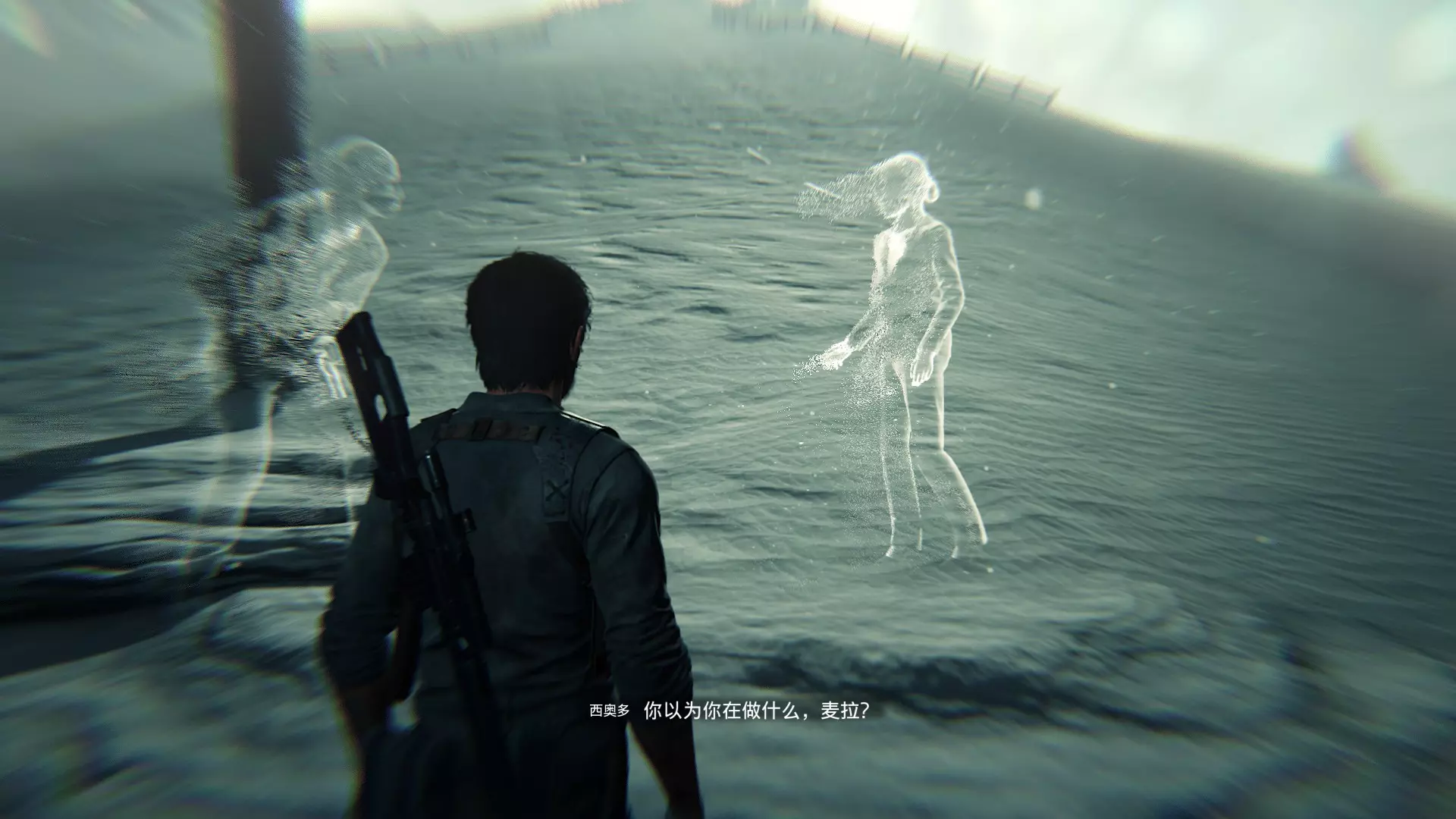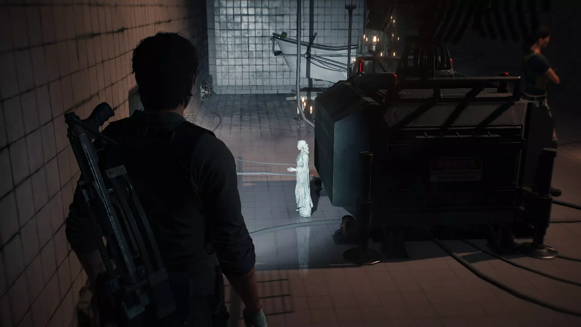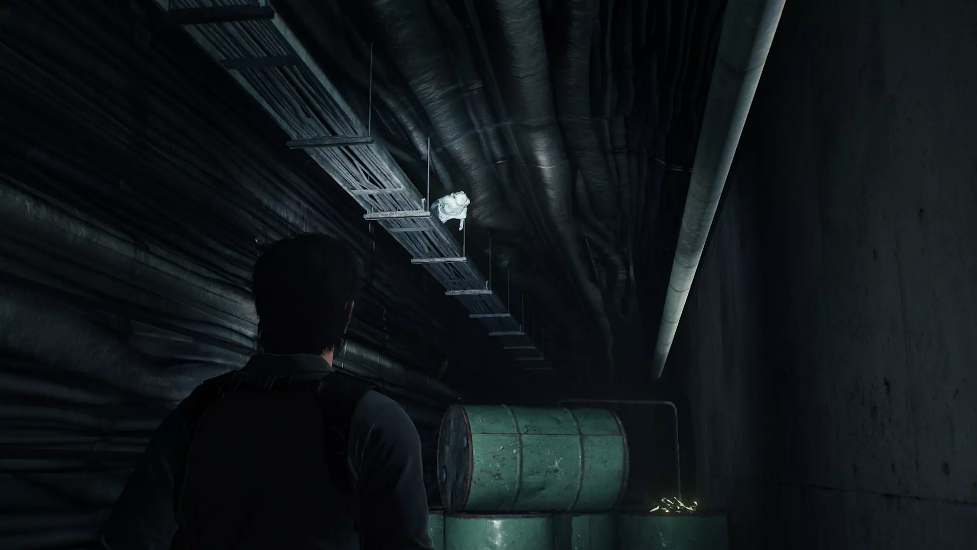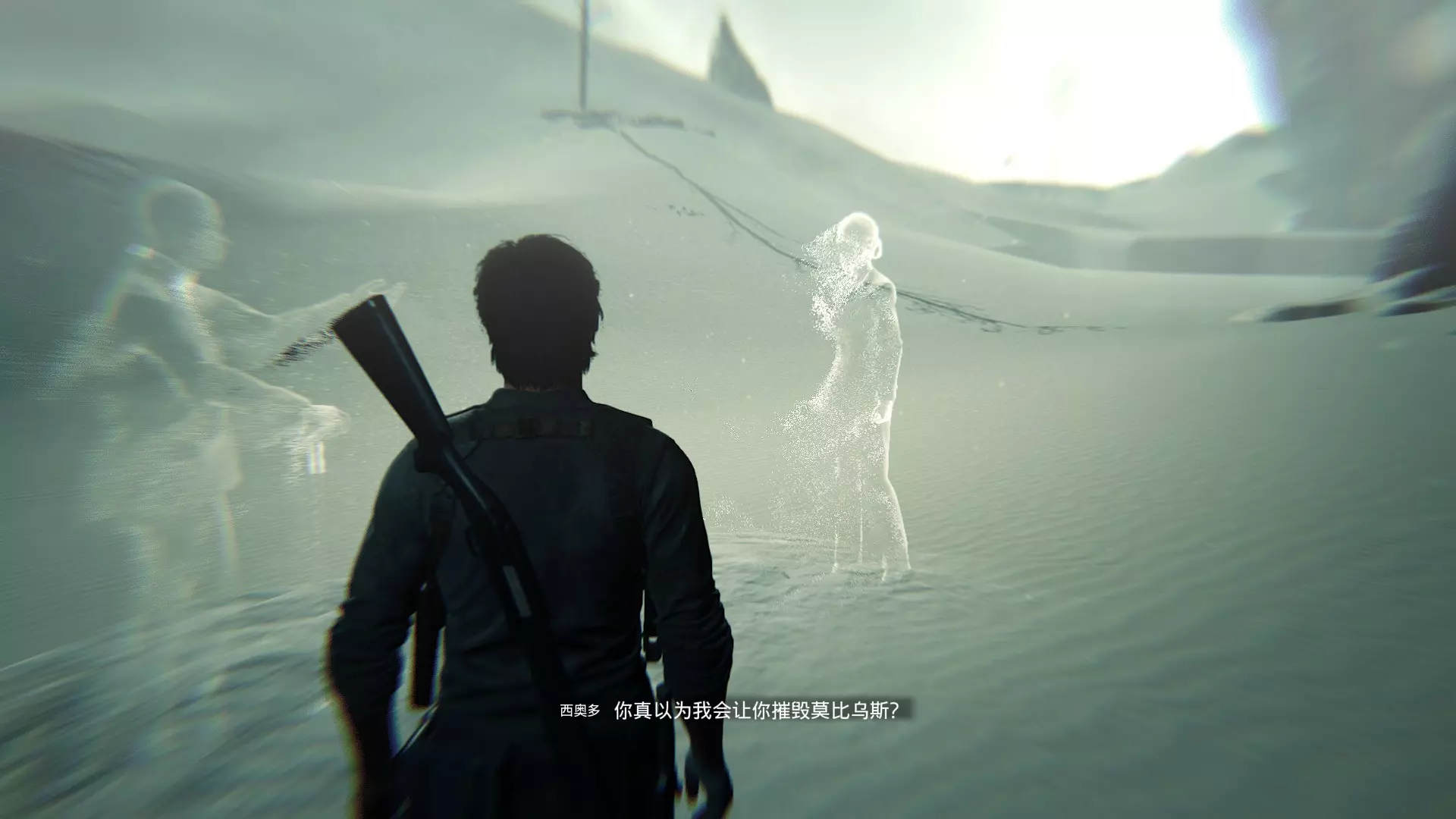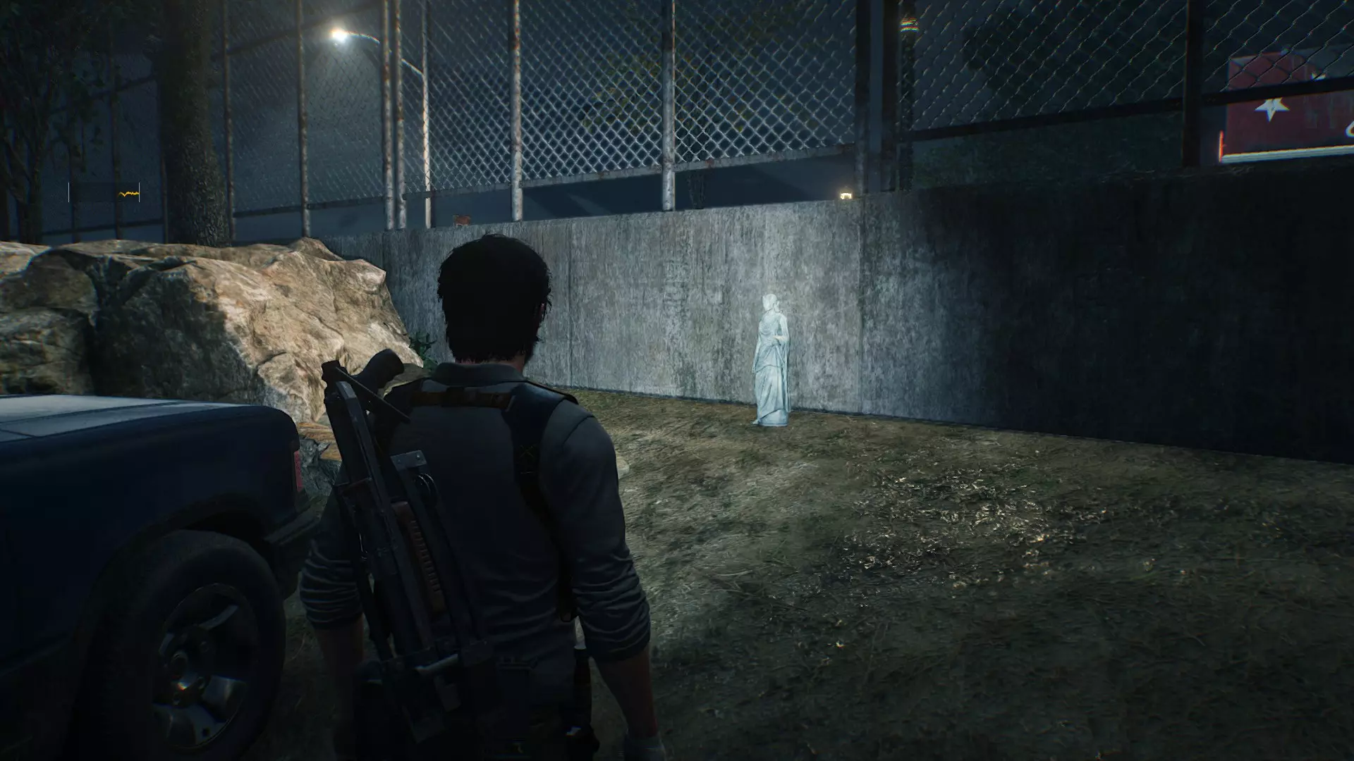 在进入大剧院结束本章之前,长途跋涉回到欧尼尔的避难所,与欧尼尔对话会触发一段彩蛋对话。主角会一语双关地说出游戏名【恶灵附身2】。