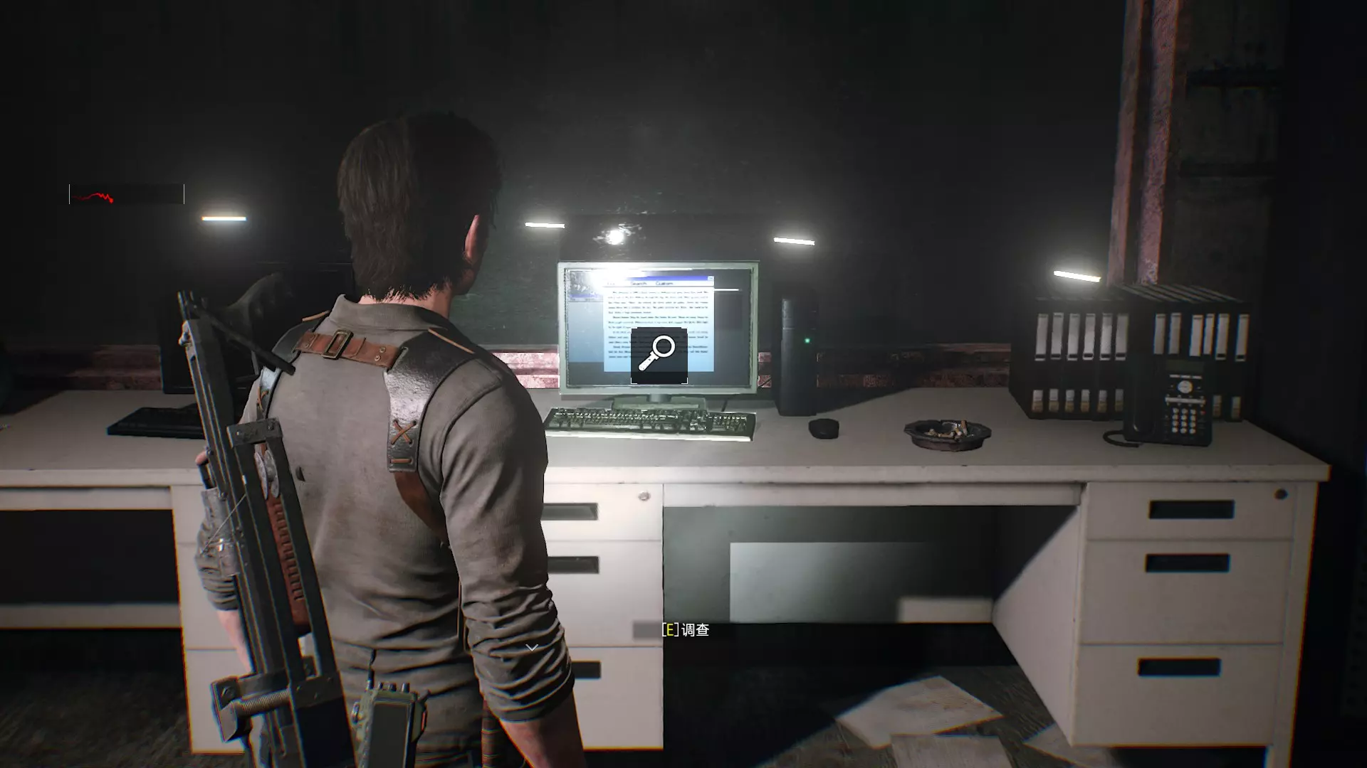 档案21【手写便条】位置:下楼调查椅子上的模特头部,场景变化后朝身后走,在桌子上有档案21