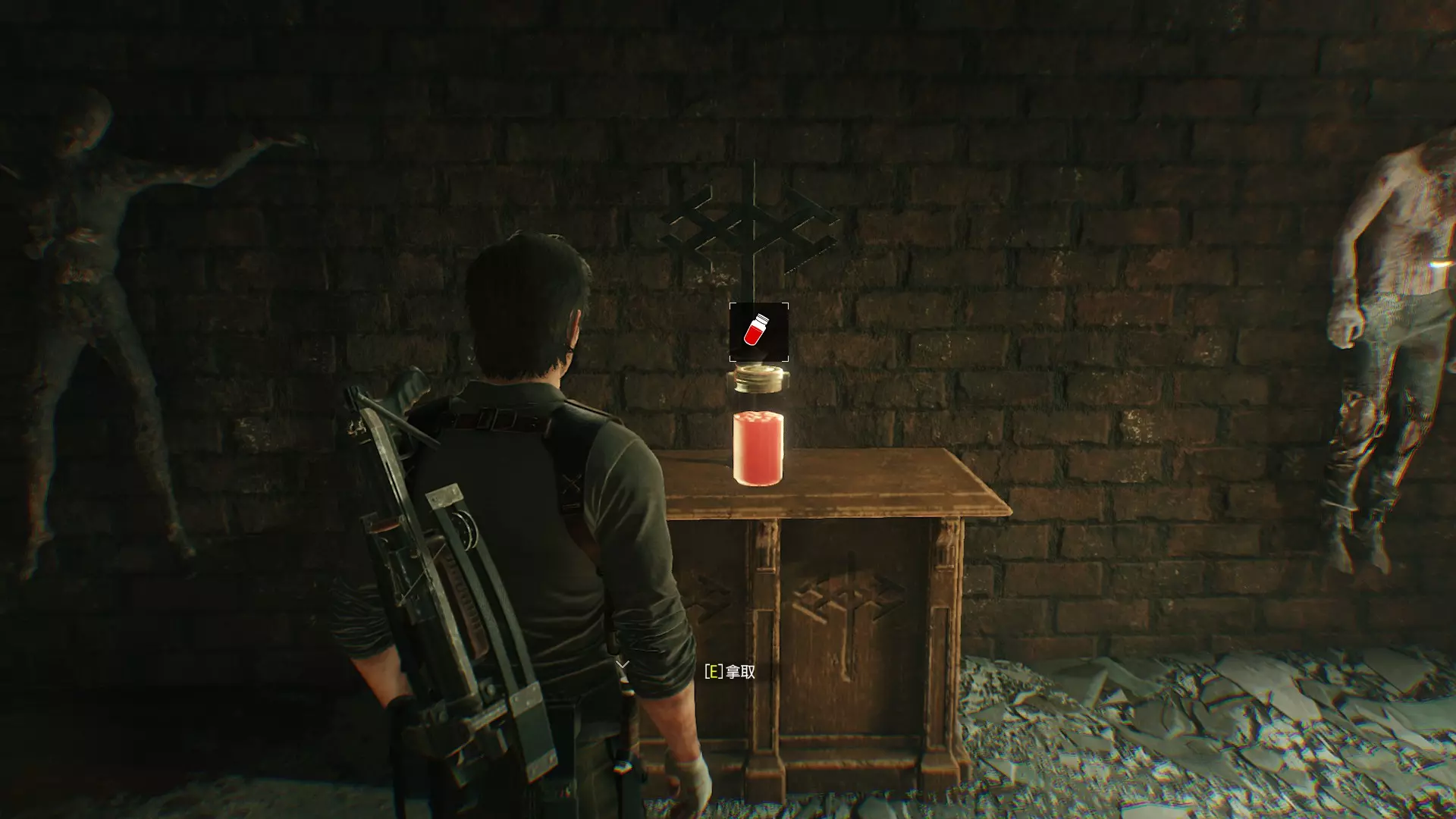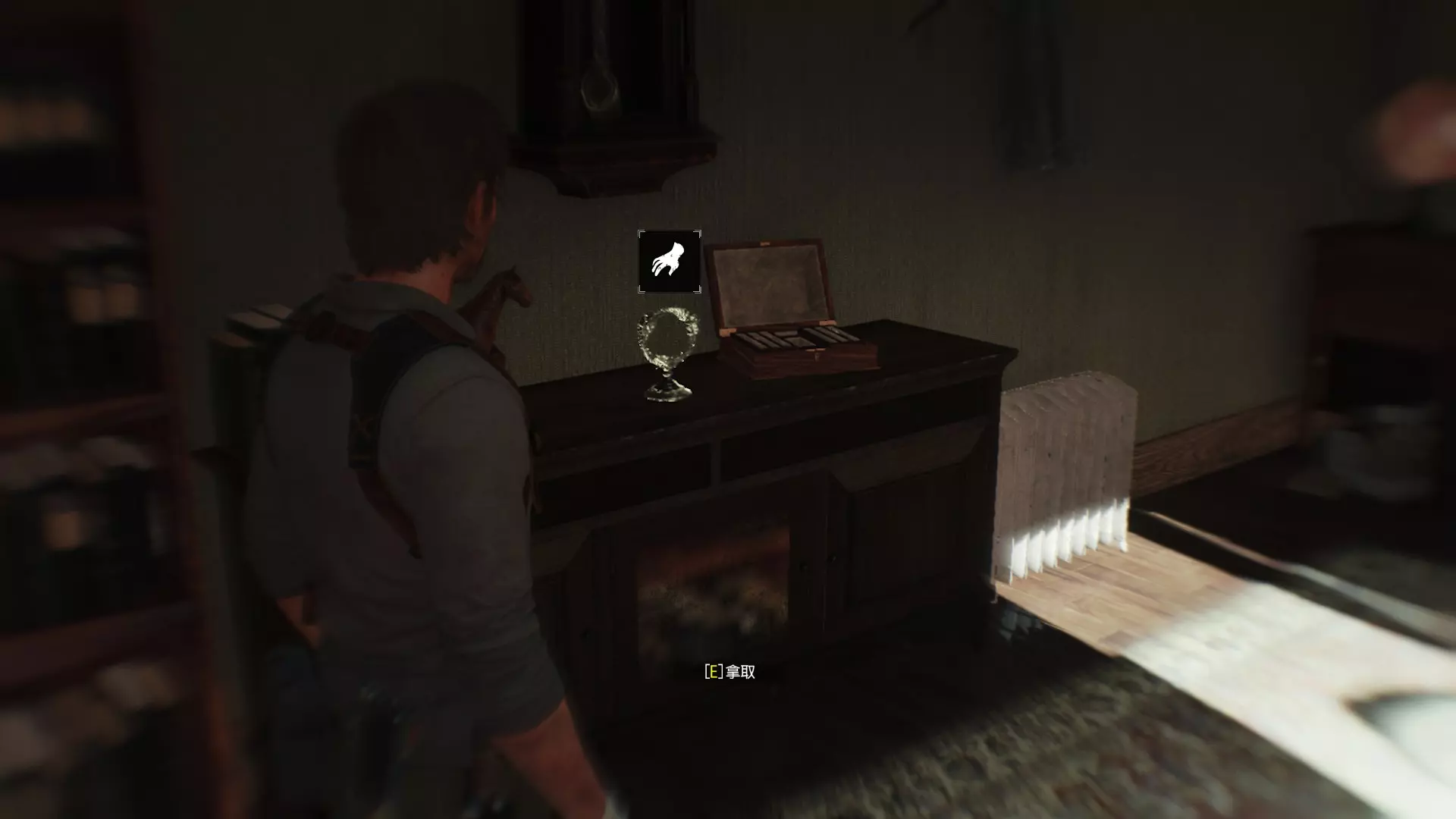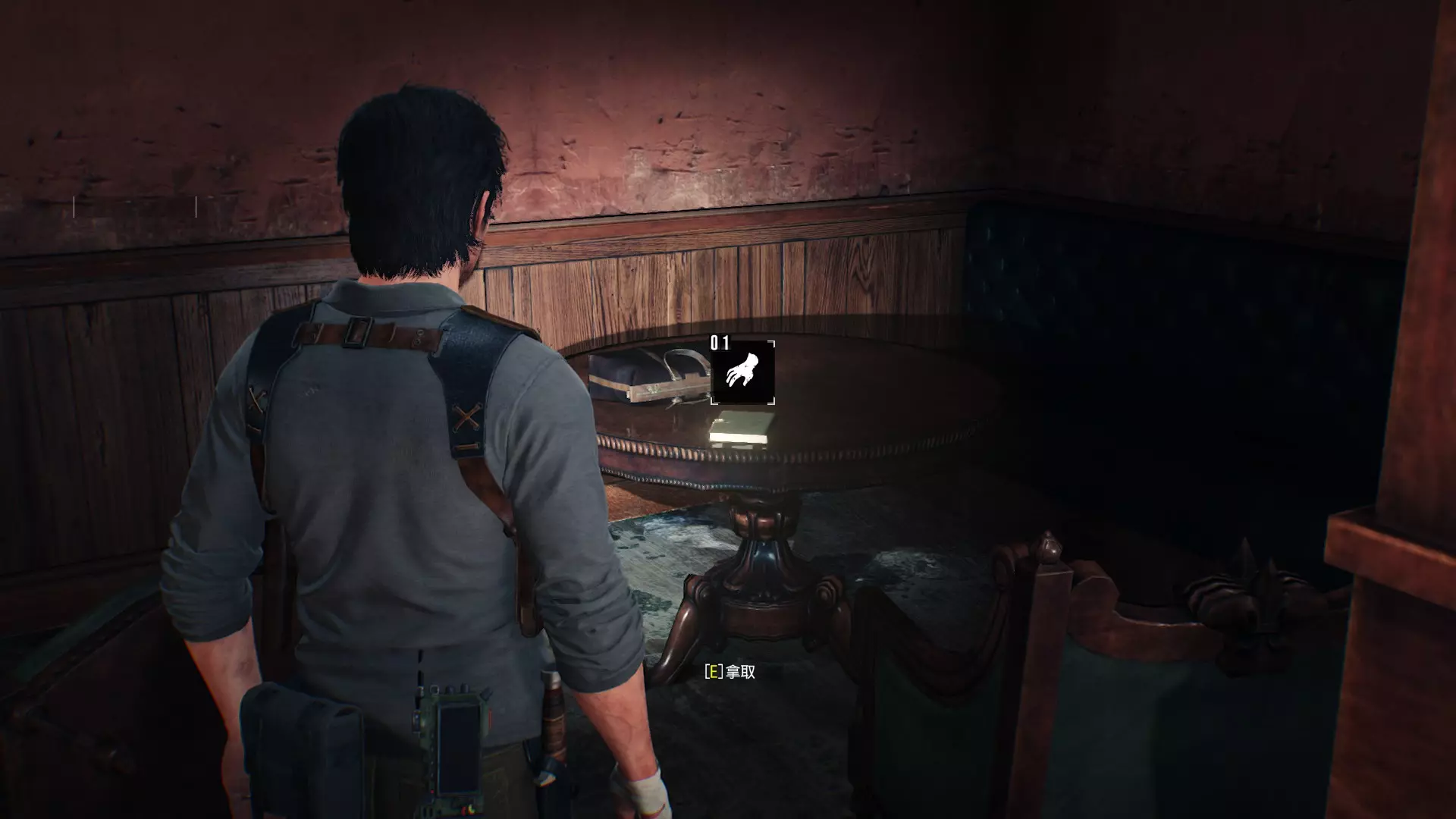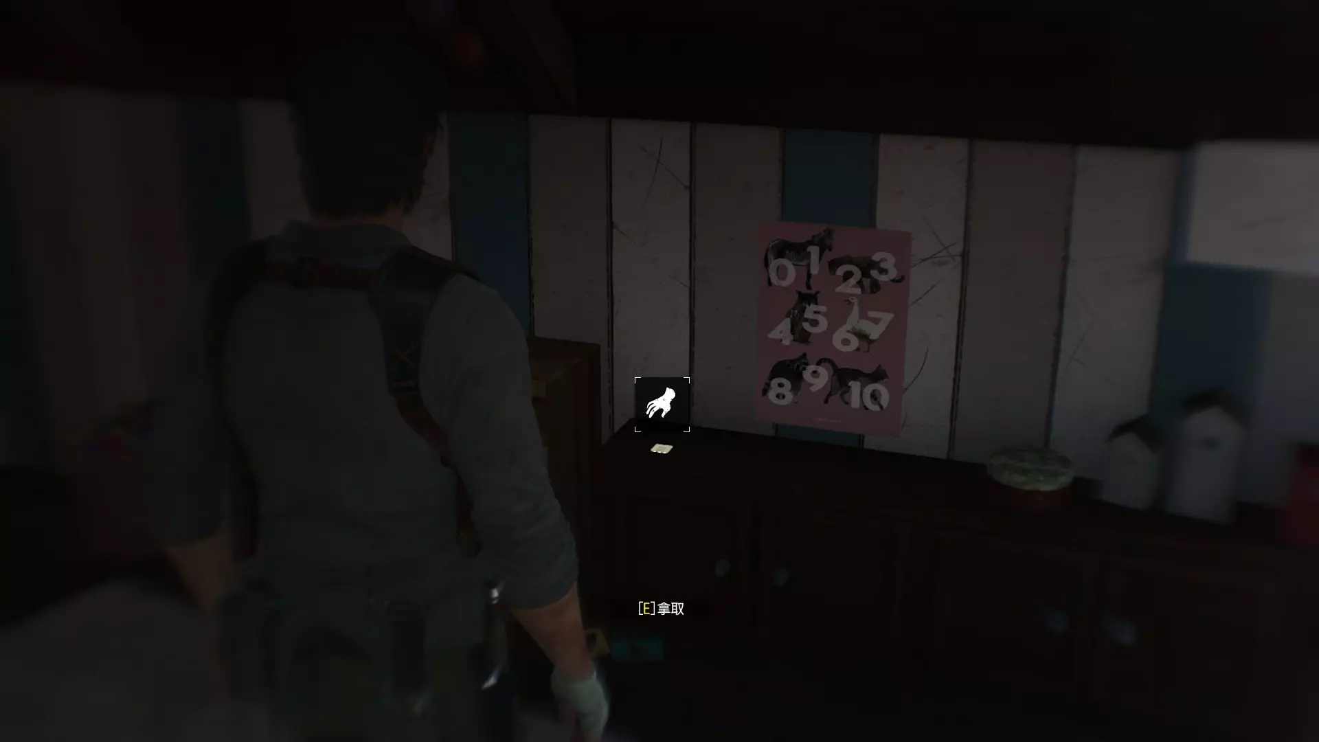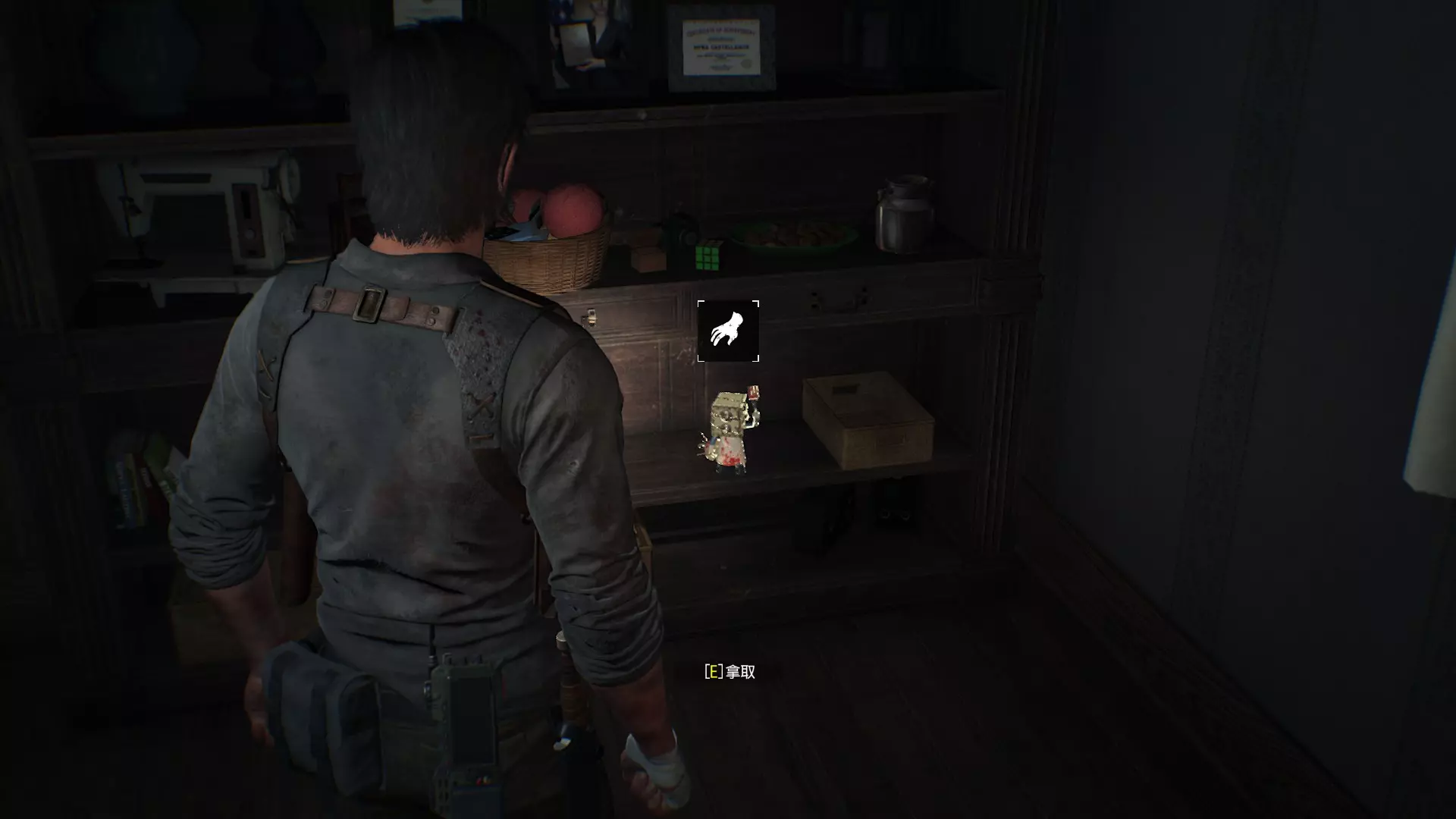 第17章 ※收集品:神秘物品x1 神秘玩具位置:视角切回塞巴斯汀,在1楼客厅的柜子拿到神秘玩具,对应游戏为【恶灵附身】