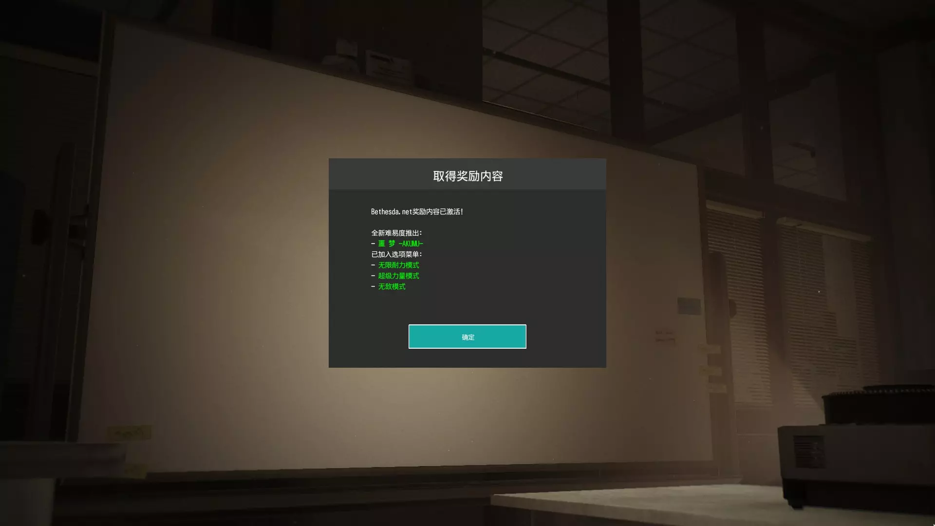 Bethesda.net奖励只要在游戏中登录B社账号,就能解锁前作的4星难度以及作弊模式
