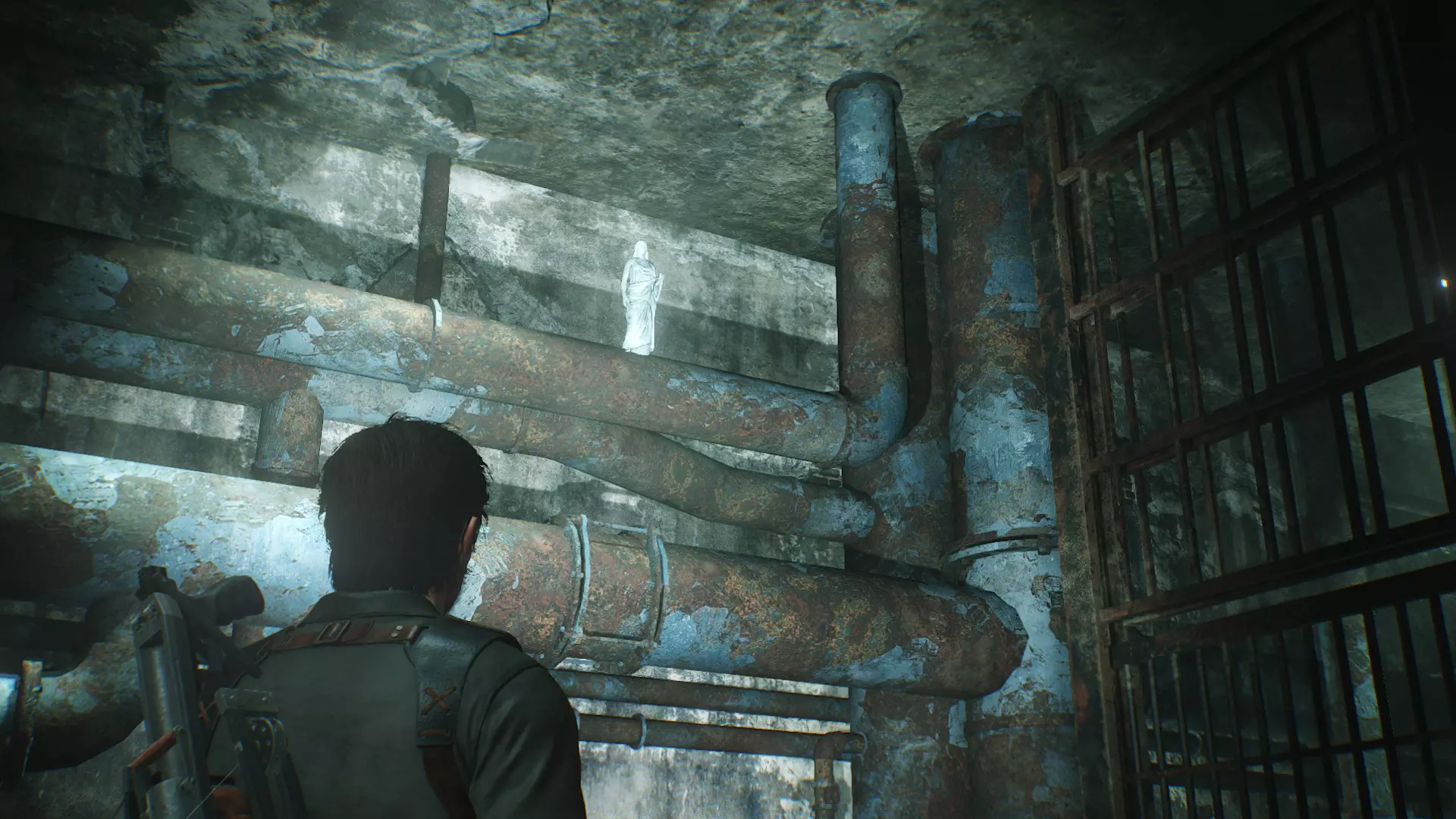 钥匙30位置:来到楼梯前,左侧的水管上有一个女神像,打碎得到钥匙30