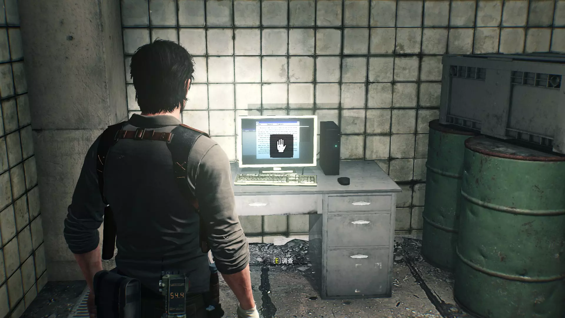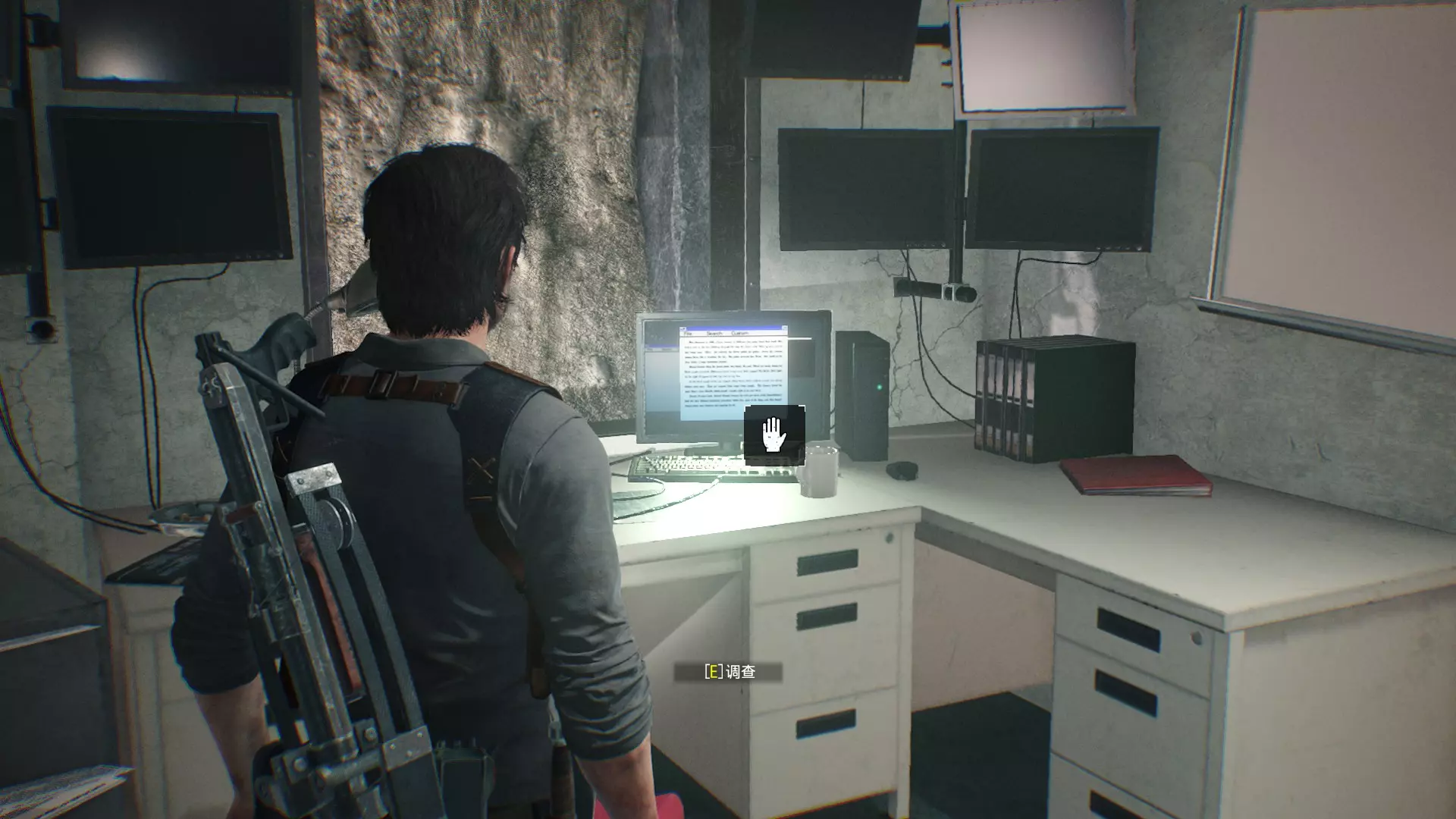 档案33【电脑档案:天坑观察日志】位置:用电击弩箭打开1楼的闸门,往里走进入右侧的房间,调查电脑即可获得。