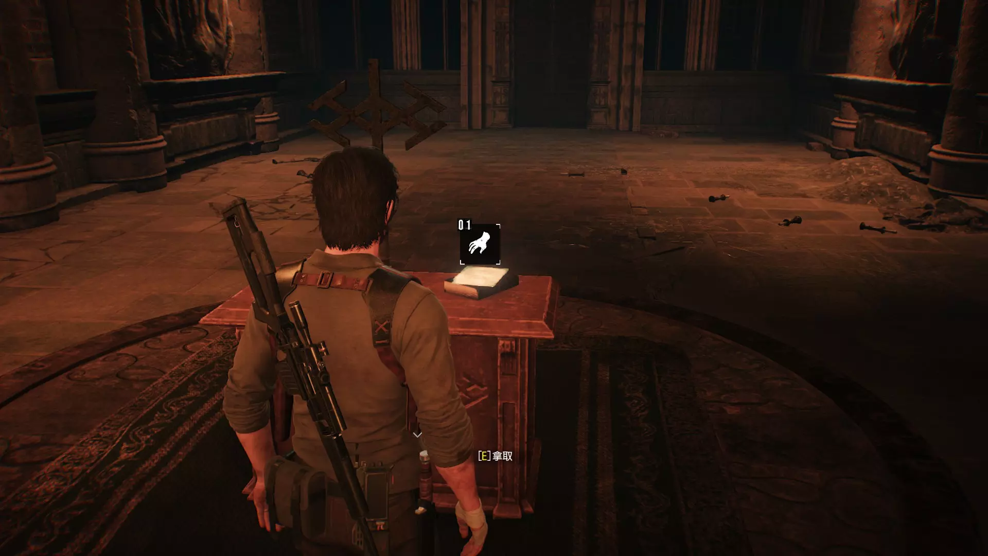 第14章 ※收集品:档案×2、残留记忆×1、置物柜钥匙×2 ※升级道具:红色凝胶×1、突击步枪弹药包×1、手枪弹药包×1 档案39【西奥多圣卷1】位置:刚开场往前走,在讲坛上能拿到档案39
