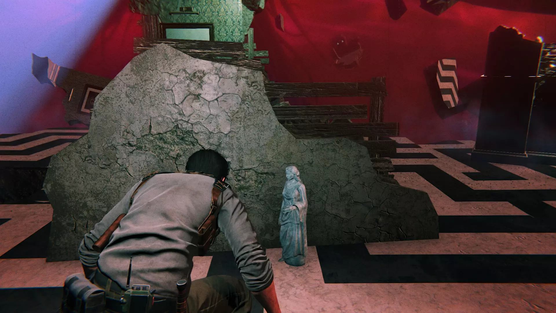 艺术家彩蛋 ①刚进入房间看到威廉·贝克的尸体时,立刻抬头能发现史蒂芬诺在俯视一切 ②顺利躲避史蒂芬诺后读取自动存档,之后在穿过两条挂满诡异画作的长廊时,会看到史蒂芬诺的身影,第一条长廊在左侧,第二条长廊在右侧