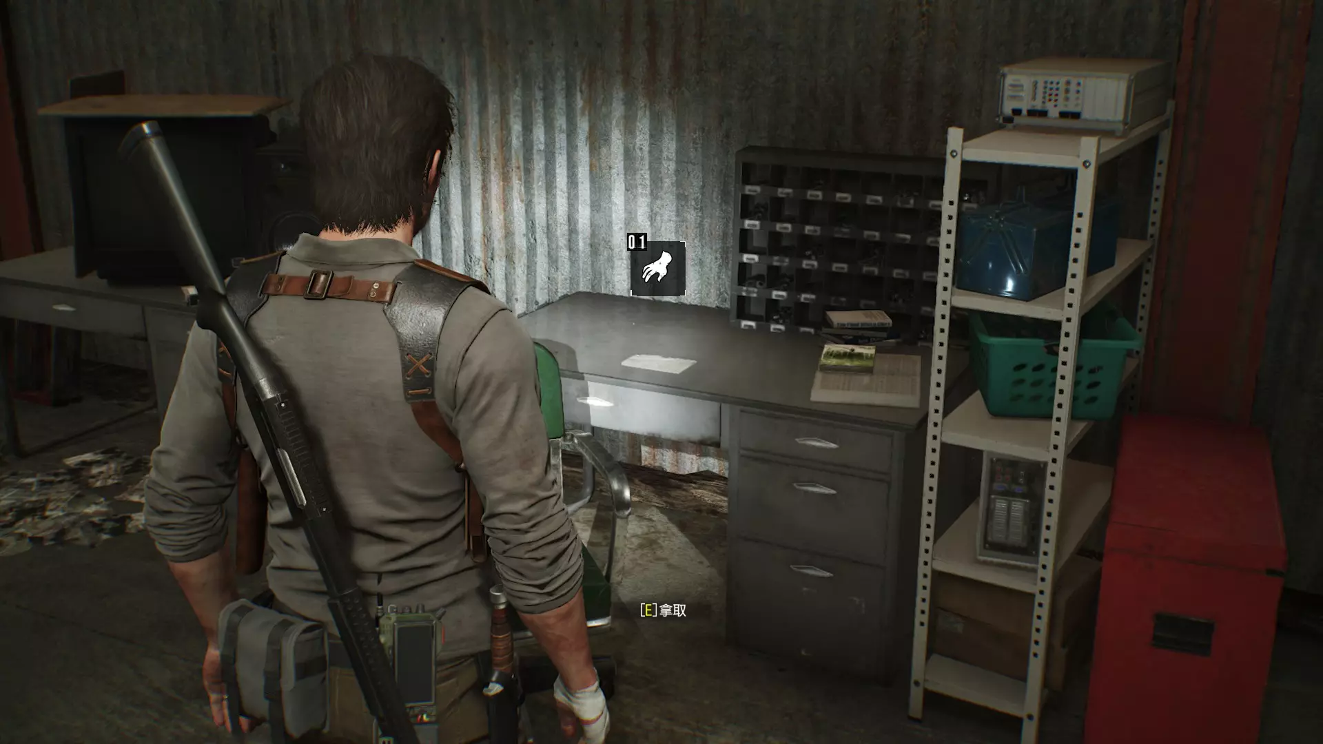 单管霰弹枪、高阶武器零件05位置:使用钥匙开启储藏室的门,在最里面的补给箱中可获得单管霰弹枪,上锁补给箱内有高阶武器零件05。