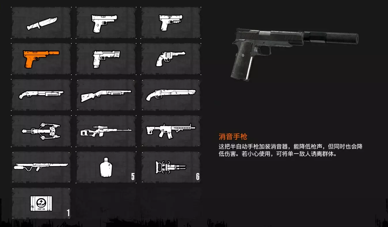 消音手枪获得方式:第7章中获得