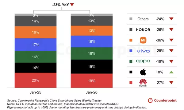 主力机型Reno14在暑期登顶安卓单品销量冠军,截至9月累计销量达333万台。 接棒的Reno15系列同样表现不俗,上市三周出货量即突破200万台,在2500-4000价位稳居份额第一,截至2026年第五周,累计销量达150.78万台。 从整体格局来看, 2000-4000元价位段仍是国内主流安卓品牌的主战场,头部品牌竞争格局清晰,而苹果在这一价位段的布局相对有限,更多产品集中在更高价位段。