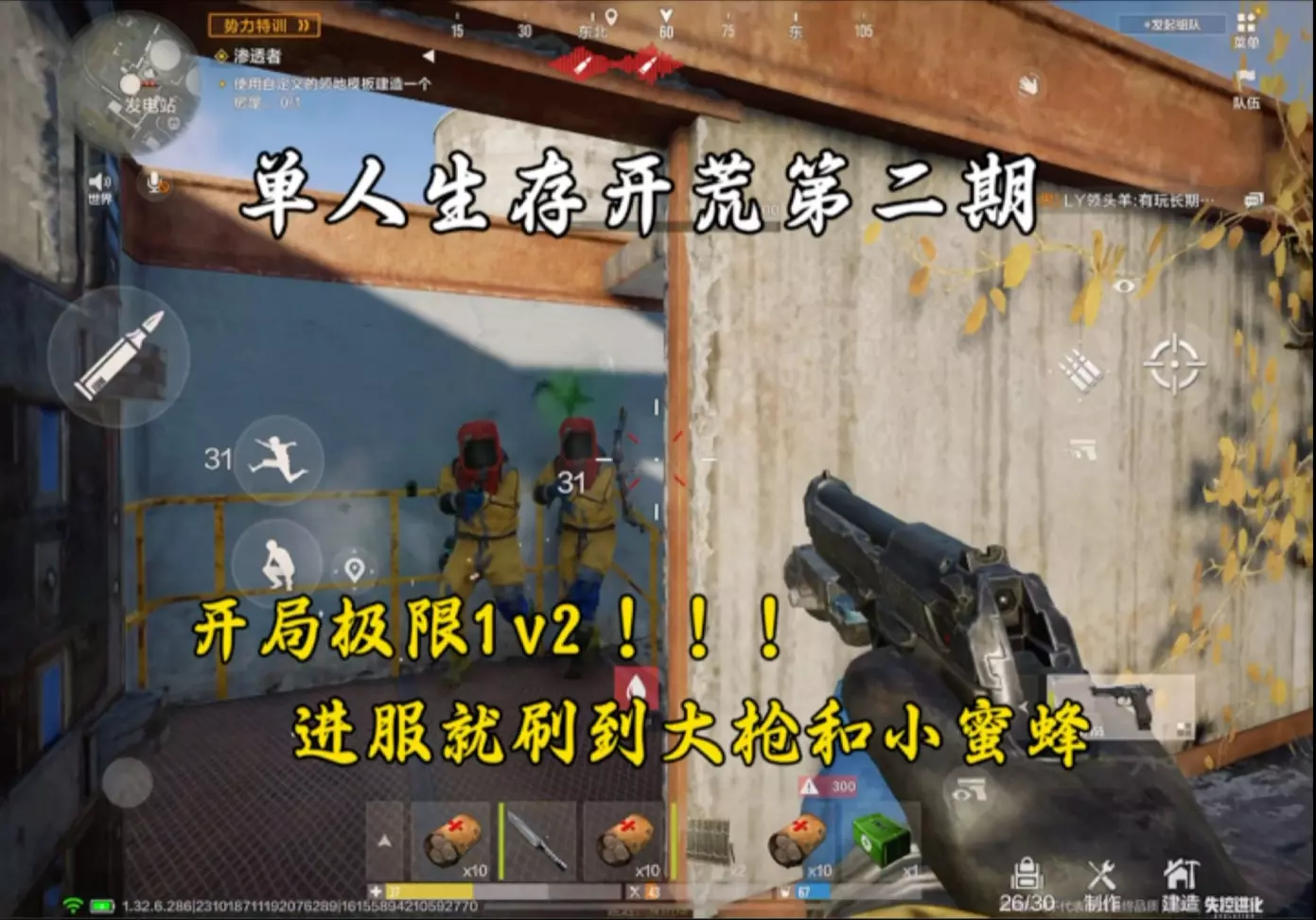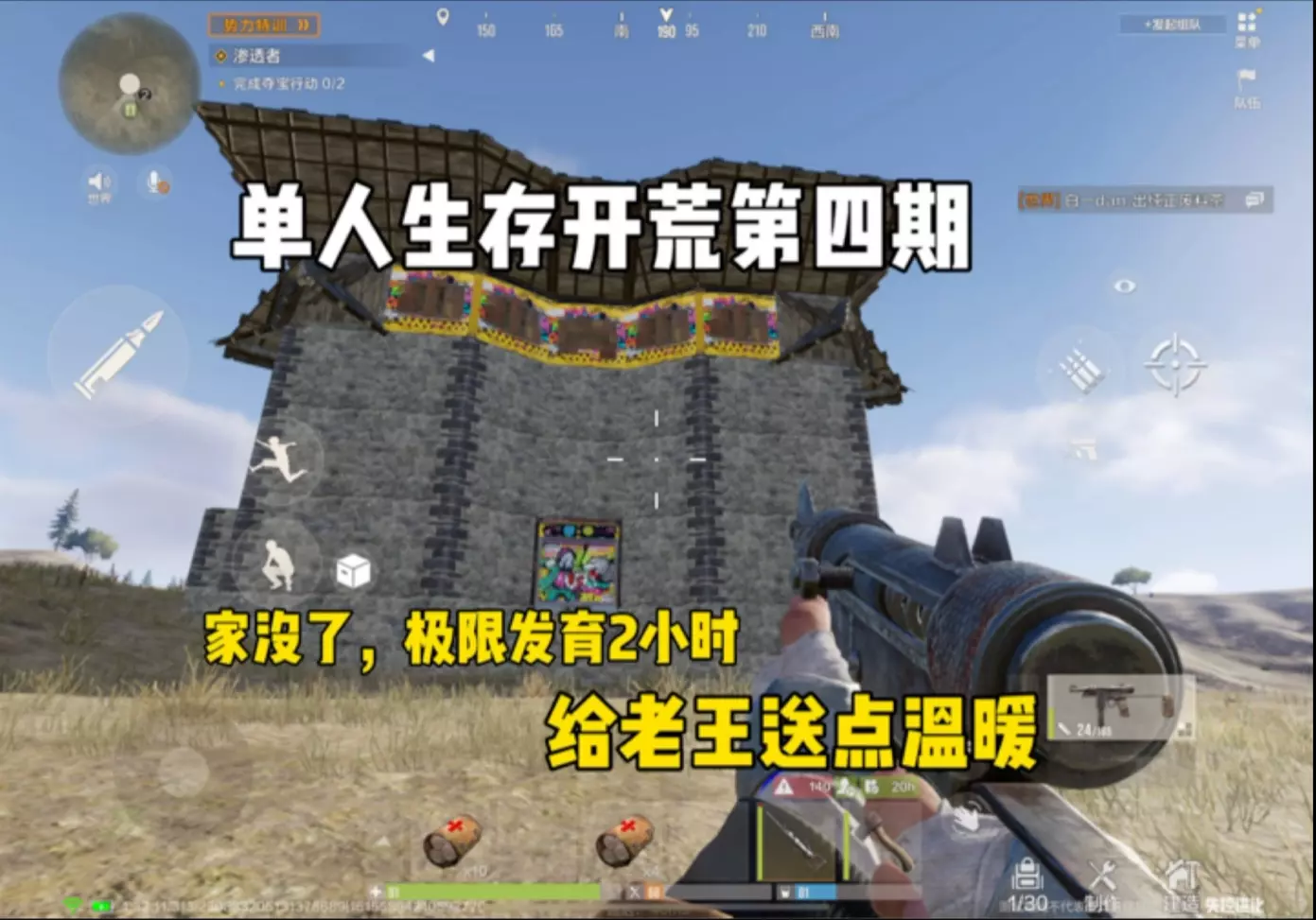 这是单人生存开荒类的游戏内容,展示了玩家从家徒四壁的窘迫状态,在游戏里通过搜索物资、战斗击败对手,仅用一小时就逆风翻盘拿下AK的过程,呈现了游戏里的装备获取与战斗玩法。