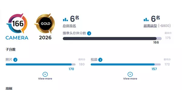 快科技2月13日消息,日前,评测机构DXOMARK公布了小米17 Ultra的影像成绩。 在DXOMARK影像第六版基准测试中, 小米17 Ultra获得166分,在全球影像排行榜中位列第6,与OPPO Find X9 Pro并列。