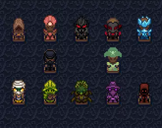 All weapons of this mod deals summon damage and have a minion summoning mechanic. These weapons summons minions to fight for you at the cost of minion slots: Pre-Boss TierEnchanted Brain On A Stick - An upgraded brain on a stick that now summons both melee and ranged zombies and the melee zombies now inflict a debuff that reduces armor by 10 Grizzly Bear Head - A strong minion that takes 2 slots and inflicts bleeding, which deals poison damage over time and reduces their damage by 20% Polar Head - A strong minion that takes 2 slots and slows enemies by 1% each attack, stacking up to 25% Royal Hive - This minion will buff the player on hit increasing health regen during combat by 0.05% and spawn bees every 10 hits, these smaller bees will slow enemies by 10% on hit Red Spider Staff - An upgraded spider staff that now poisons on hit and while wearing the red spider set, this minion will apply another debuff increases the poison damage from all sources by 100%, including from itself Cactus Staff - The projectiles shot from this minion have a random piercing value that vary between 0 to 4, making it possible to hit up to 5 targets in a single shotPre-Captain TierVampire Wings - A ranged minions that shoots homing projectiles that can bounce walls and while wearing the bloodplate set the projectiles shot deals 30% more damage and travels faster Runebone Staff - Summons melee minions with 10% chance to summon a ranged minion instead, the chance is increased by upgrading the weapon Gold Pitchfork - A melee minion that takes 2 slots and have 10% to drop wheat and 2% chance to spawn a chicken or pig on hit, making it a source of food that gets more reliable with more minions Ice Wizard Staff - Shot projectiles from this minion causes 30% slow, deals frost damage over time and increases frost damage from all sources by 100%, while wearing the frost set projectiles will travel faster and does 20% more damagePre-Incursion TierSand Worm Staff - The sand worm attacks in the same pattern as the ruby dragon and also takes 2 minion slots Dryad Essence - The summoned ghoul have a very low movement speed but compensate with it's trail that does 50% of it's damage and have it's own minion cap that increases by upgradingEndgame TierRuby Shards - This golem shoots a projectile that gets stuck on foes but don't have any special effect but shoots faster than others ranged golems Emerald Shards - This golem shoots a laser that have 1000 pierce and bounce walls, which makes it the best golem to deal with crowds and worms but it have the slowest attack speed Amethyst Shards - This golem inflicts the crystallize debuff, which causes a big hit based on your crit chance and crit damage when you reach max stacks and synergies with the amethyst sword, but if you want to inflict the debuff with only minions you will need at least 2 golems to reach max stacks to proc the debuff Sapphire Shards - This golem needs to be used alongside a weapon that generates life essence since it won't generate on it's own, when you have any life essence the next time this golem hits a foe an essence will be consumed and a Sapphire glyph will spawn at your location Topaz Shards - This golem shoots a projectile that can bounce 20 times and have 5 pierce, making it stronger on smaller places Secondary Weapons These summoning weapons do not use any summon slots, so they can be used together with another summon weapon to provide additional damage. All secondary weapons have a limit on how many minions you can have and can be increseased by upgrading to higher tiers Pre-Boss TierMagic Wood Tools - Each time it hits foes, you get a stack of magic wood buff which gives +1 mining range and 10% mining speed, the max amount of stacks is increased by upgrading this weapon and can reach 8 stacks at tier 5 giving +8 range and 80% mining speed Explosive Snowball - If it hits foes 5 times in a short time it will explode dealing 2x it's damage and damaging everything in it's radius including players, while wearing the frost set the explosion the damage is increased to 3x and the explosion area is bigger Magma Book - When it hits a foe that is affected by any burn debuffs the duration of the burn will be extended to 60 hours, including the burn effects from trinkets, armor sets and walking on lavaPre-Captain TierBee Book - This weapon can't increase it's minion limit by upgrading, minions can go through walls and inflict the same debuff as the bees summoned by queen bees which gives a 10% slow to foes Frozen Book - Projectiles shot by these minions causes frost damage over time and slows by 30%, each minion disappear after throwing 10 javelins, while wearing the frost set each javelin thrown have 50% to not count toward the 10 throws limits Runic Book - Minion hits provides a stack of Runic Shield which increases armor by 2 for each stack up to 24 armor at max stacks, these minions have a health bar of 100 on the lowest difficult and goes up to 300 at brutal difficult and works like the ruby shields, protecting from projefctiles that don't pierce Sentry Weapons These weapons works like normal minion weapons but these minions don't move and aren't affected by the summon speed stat Pre-Incursion TierCaveglow Staff - The first dps sentry, it glows and shoots projectiles that have 1 pierce and 1 bounce with a slight homingEndgame TierVampire Coffin - This sentry shoots the same projectile as the vampire minions but every 10 shots a crypt bat will be summoned, which flies toward foes 20% of the coffin damage, while wearing the bloodplate set the bats will have 100% damage and projectiles shot deals 20% more damage and travel faster Secondary Sentry WeaponsSame as the secondary weapons but with stationary minions: Pre-Boss TierMushroom Book - This slows nearby foes by 20% and grants the player a buff that increases max health by 5 on kill up to 50 health and decreases over time, it also summons a minion over time don't take minion slots and have a health bar of 