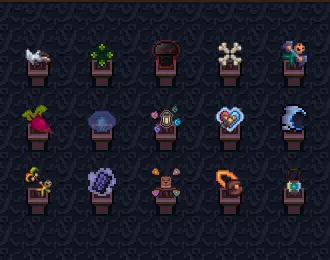 此模组的大多数饰品是其他饰品的组合,所有饰品都可在召唤台制作,且随着召唤台的升级会解锁更多饰品。 召唤台: 魅惑护符 - 该饰品几乎能使消耗耐力的饰品(主要是靴子类)的持续时间翻倍。 恶魔召唤台: 恶魔极地之爪 冰冻刺客兜帽 伙伴精华 诱导背包 钨钢召唤台: 暗影恐惧披风 骨堆 狂笑之镜 法术石板 挑战者护甲片 召唤者策略 堕落召唤台: 魅惑背包 死灵之爪 狂怒石戒指 狂怒恐惧披风 死灵法师护甲 药水