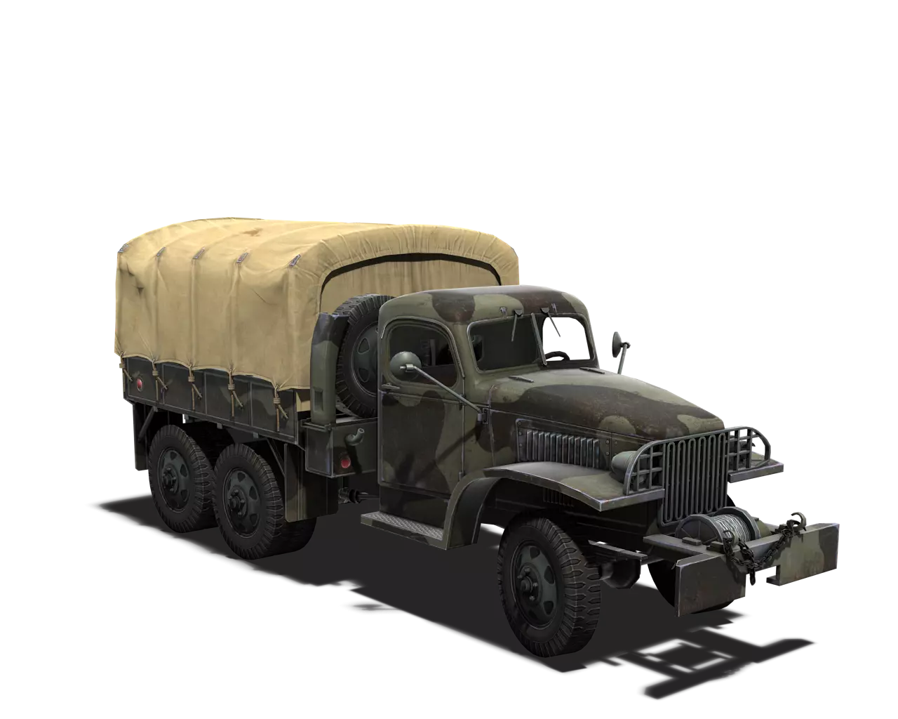 短描述: 一款适合森林的完美迷彩。缺乏绿色对狙击手来说仍有些恼人。浅色图案使其在森林边缘表现出色,是狙击手的理想位置。 最佳使用地点:夏季森林 适用地点:秋季森林、山地、城市 不适用地点:开阔地带 个人战斗评分(1-5):4 价格:372,000 银币 或 2,100 金币 美国步兵载具涂装(第一部分) 1/4 吨 4x4 卡车 原厂