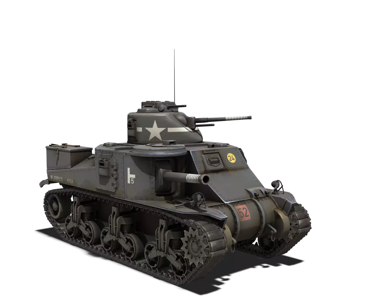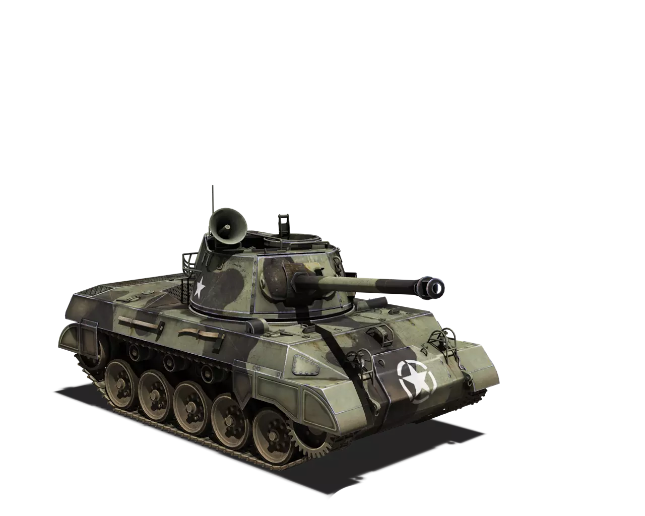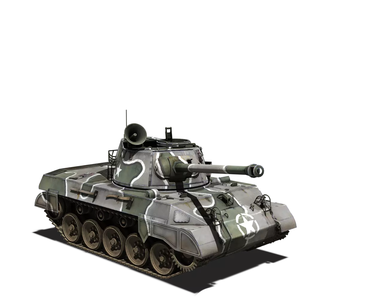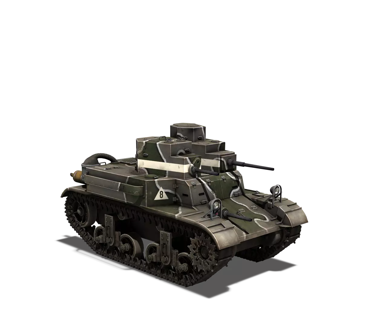 简短描述: 这是一款相当普通的涂装,再次缺少其他自然色彩。不过,它通常是大多数美国载具可用的最佳涂装。 最佳使用地点:山地、城市 适用地点:夏季森林 不适用地点:秋季森林、开阔田野 个人战斗评分(1-5):3 价格:100,000 银币或 400 金币 M5A1 斯图亚特 原厂