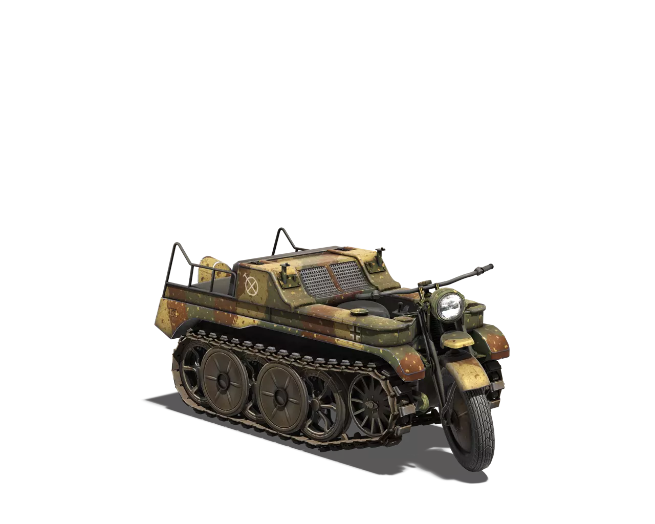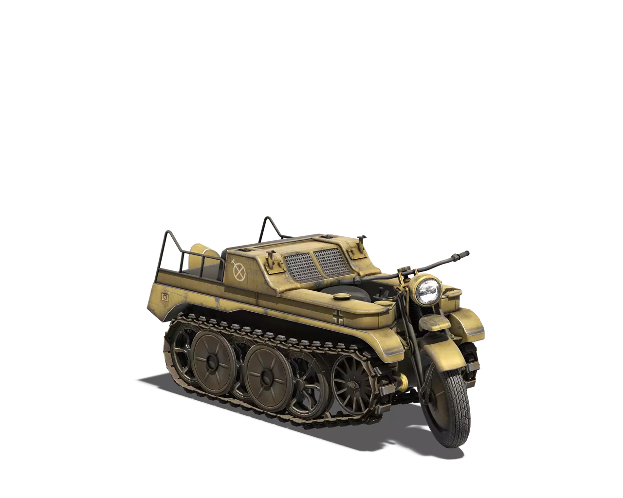 简短描述:德国车辆的原厂涂装是最糟糕的。 最佳使用地点:城市 适用地点:山地 不适用地点:除城市和山地外的所有地方 个人战斗评分(1-5):1.5 价格:无 SDKFZ 2 Kettenkrad HK 101 原厂