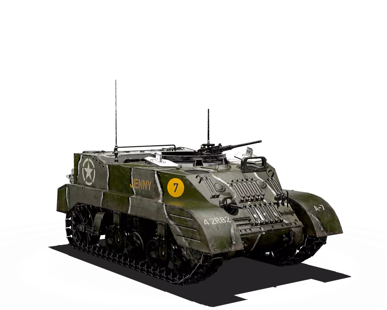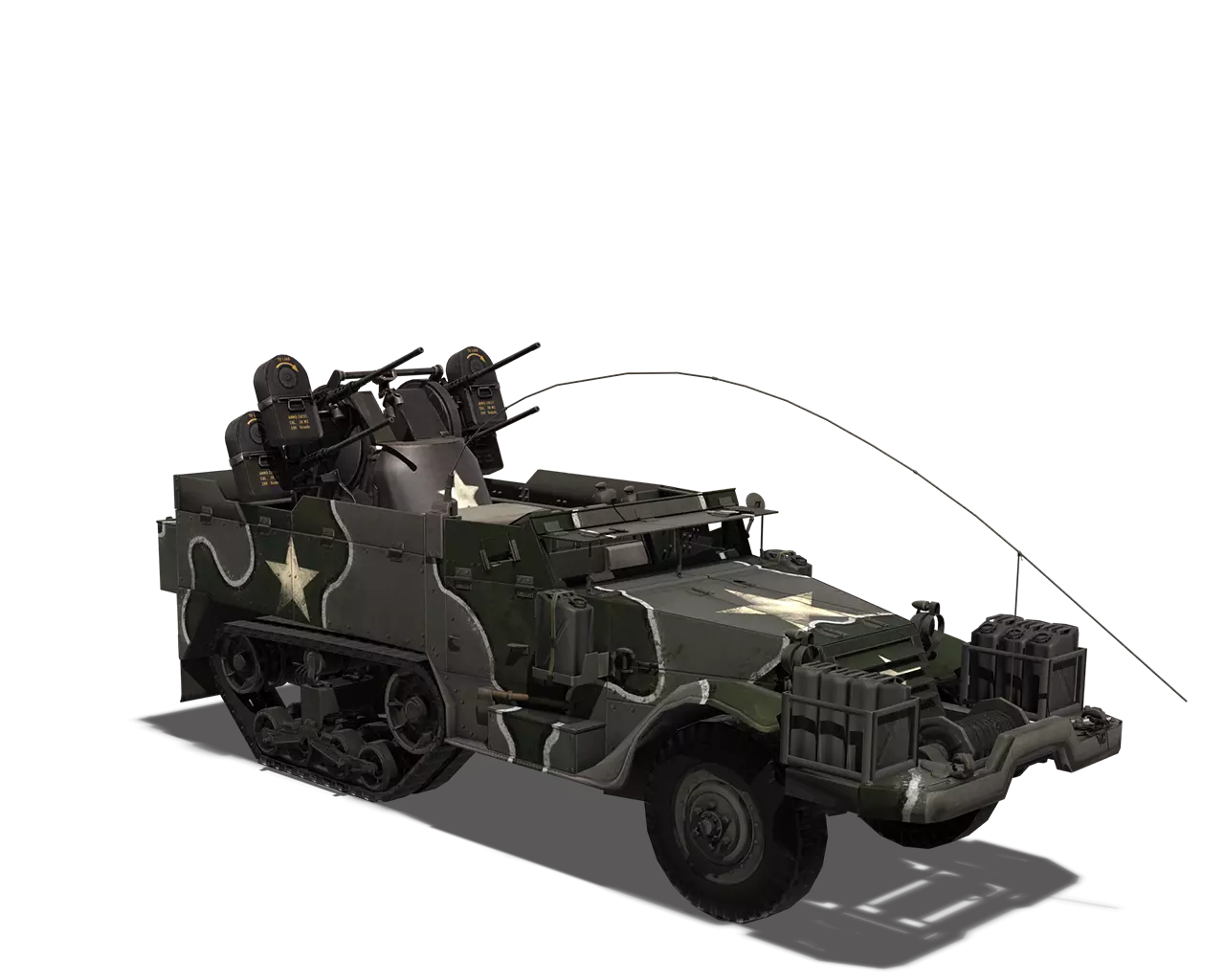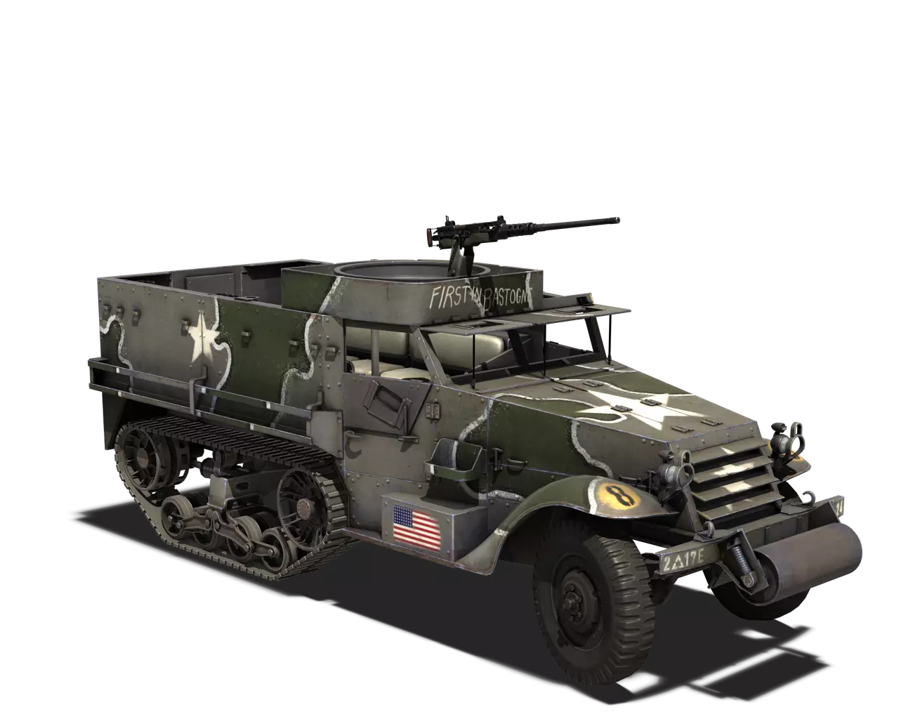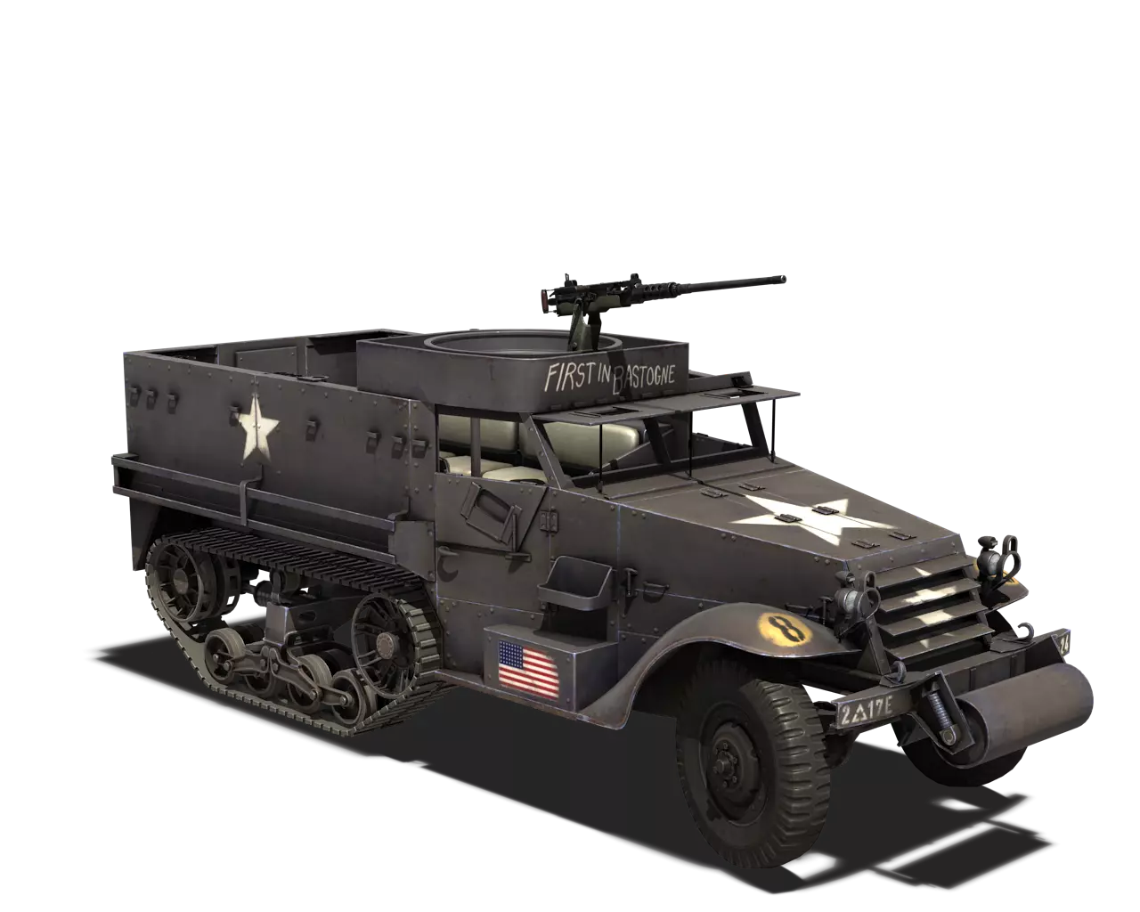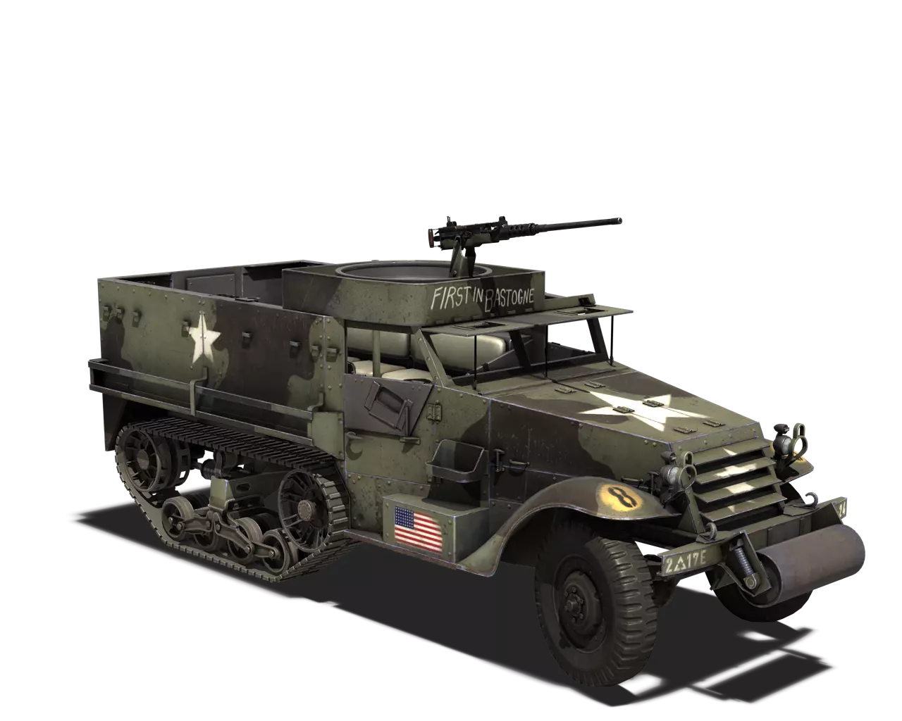 简短描述:别费劲了。CCKW卡车体型庞大,帆布篷颜色也完全不同。直接用原厂涂装吧。 最佳使用地点:城市、黑暗区域 适用地点:夏季森林、山区 不适用地点:开阔田野、秋季森林 个人战斗评分(1-5):2 价格:90,000银币或360金币 M3半履带车 原厂