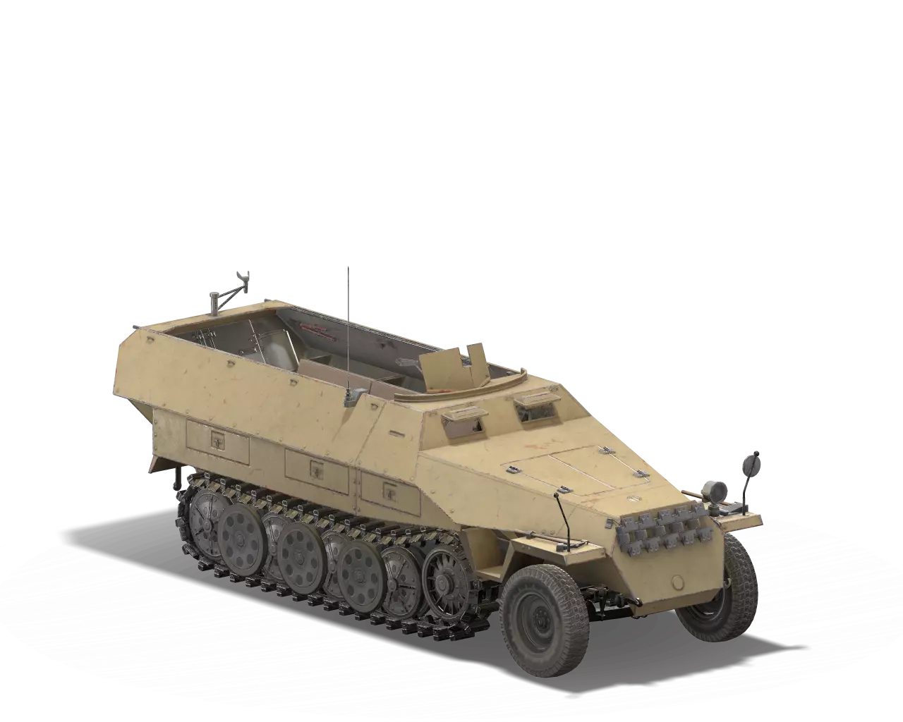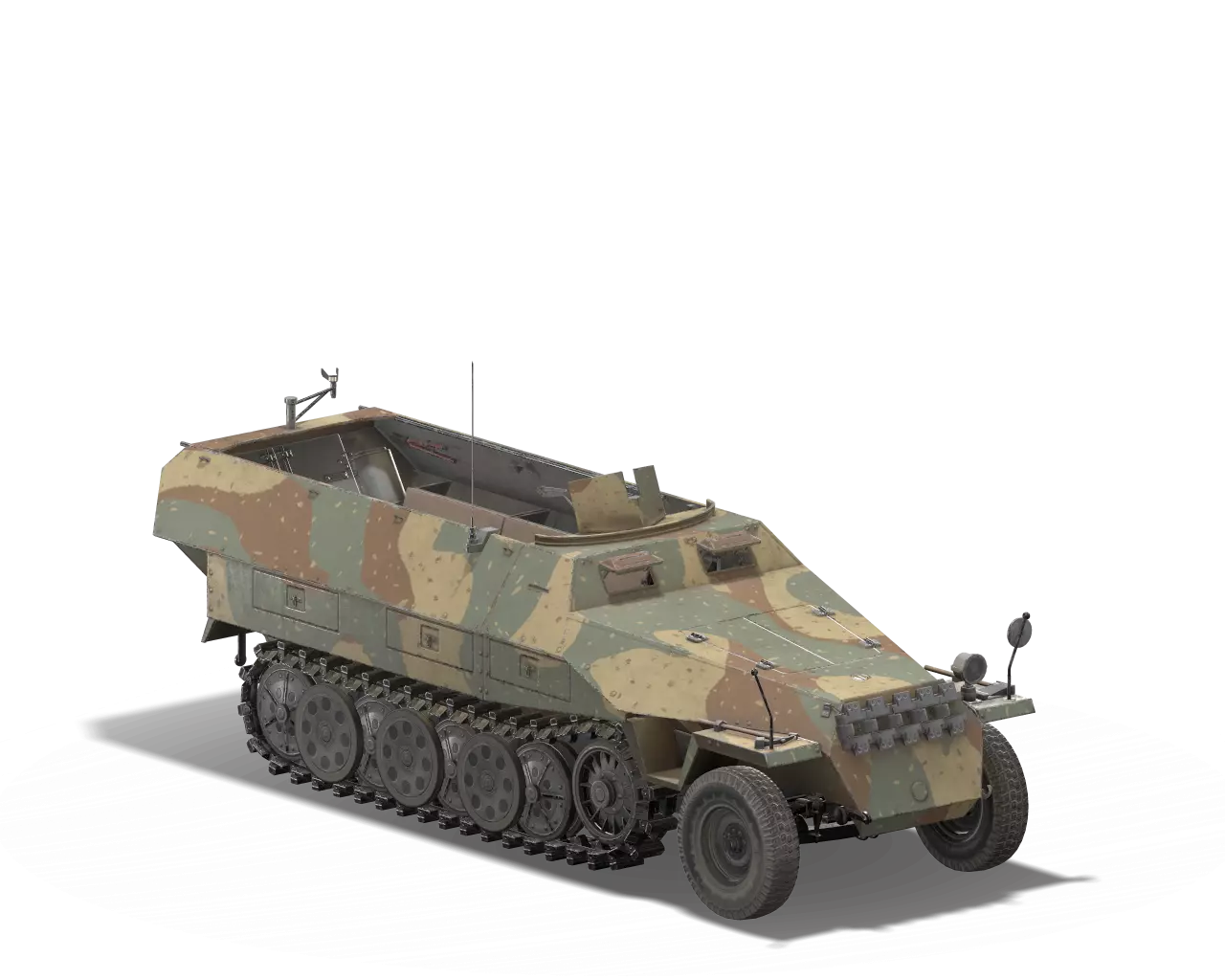 简短描述:非常实用。但布制覆盖物有点影响使用。 最佳使用地点:秋日森林 适用地点:夏日森林、开阔田野 不适用地点:城市 个人战斗评分(1-5):3 价格:130,000 credits 或 520 gold SDKFZ 251/1 工厂
