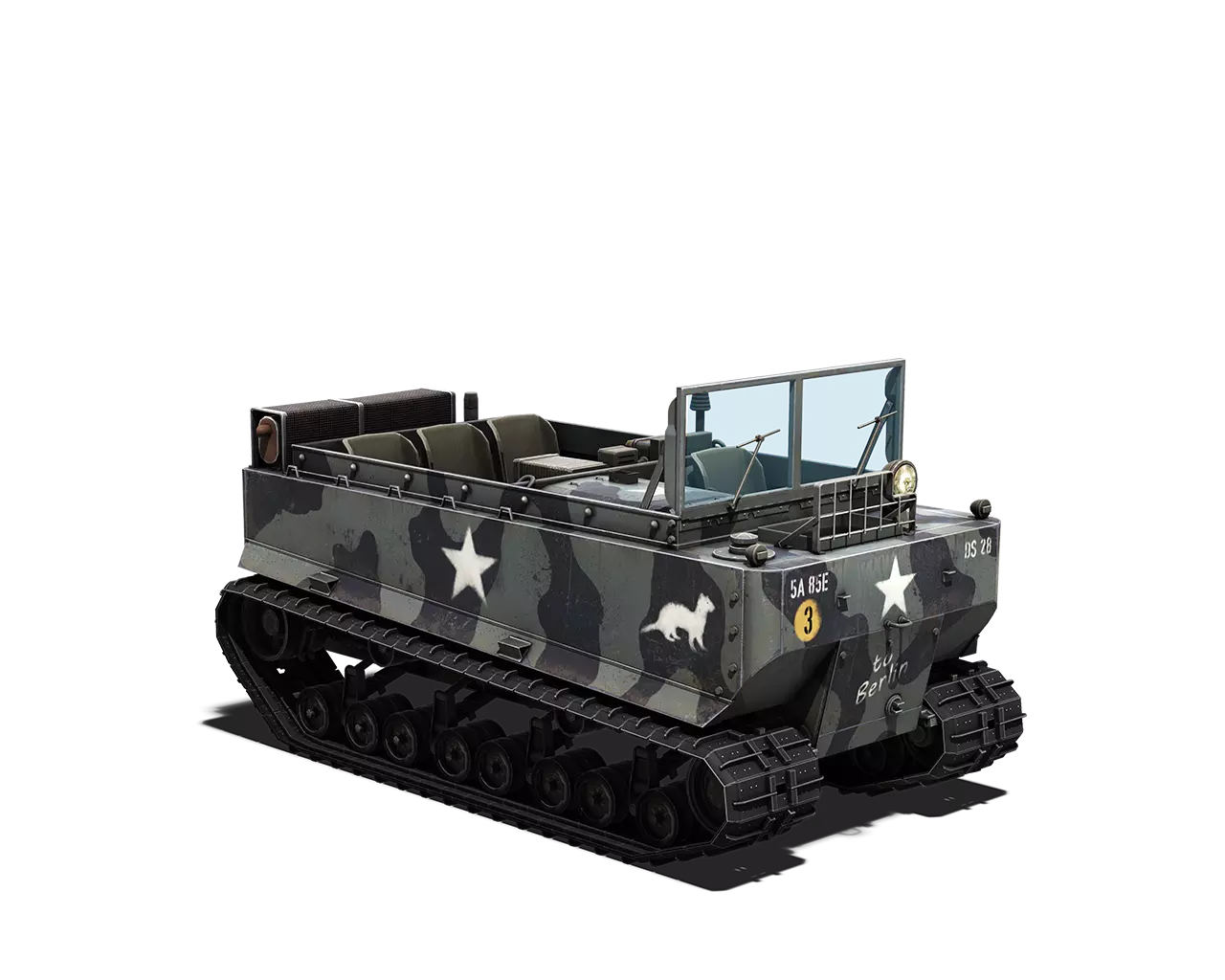 简短描述: 涂装效果相当一般,再次缺少其他自然色彩。不过,它通常是大多数美国载具可用的最佳涂装。 最佳使用地点:山地、城市 适用地点:夏季森林 不适用地点:秋季森林、开阔田野 个人战斗评分(1-5):3 价格:100,000 银币 或 400 金币 美国侦察载具涂装 免责声明:摩托车 42WLA 请查看美国步兵载具部分。 M20 装甲 utility 车 工厂