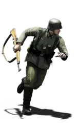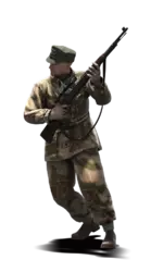 简短描述:这是标准的德国步兵迷彩。这种迷彩在现实中效果很差,但为了让游戏更具街机风格和公平性,对颜色进行了平衡处理,使其隐蔽性有所提升。在阴影环境下使用效果更佳,因为它能很好地融入其中。 最佳使用地点:山地 适用地点:岩石地带、夏季树林、城市区域 不适用地点:秋季树林、开阔地带 个人战斗评分(1-5):2 价格:无 名称:原野绿