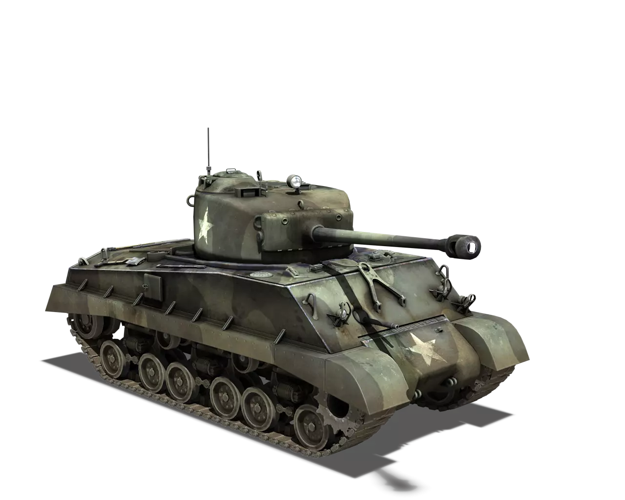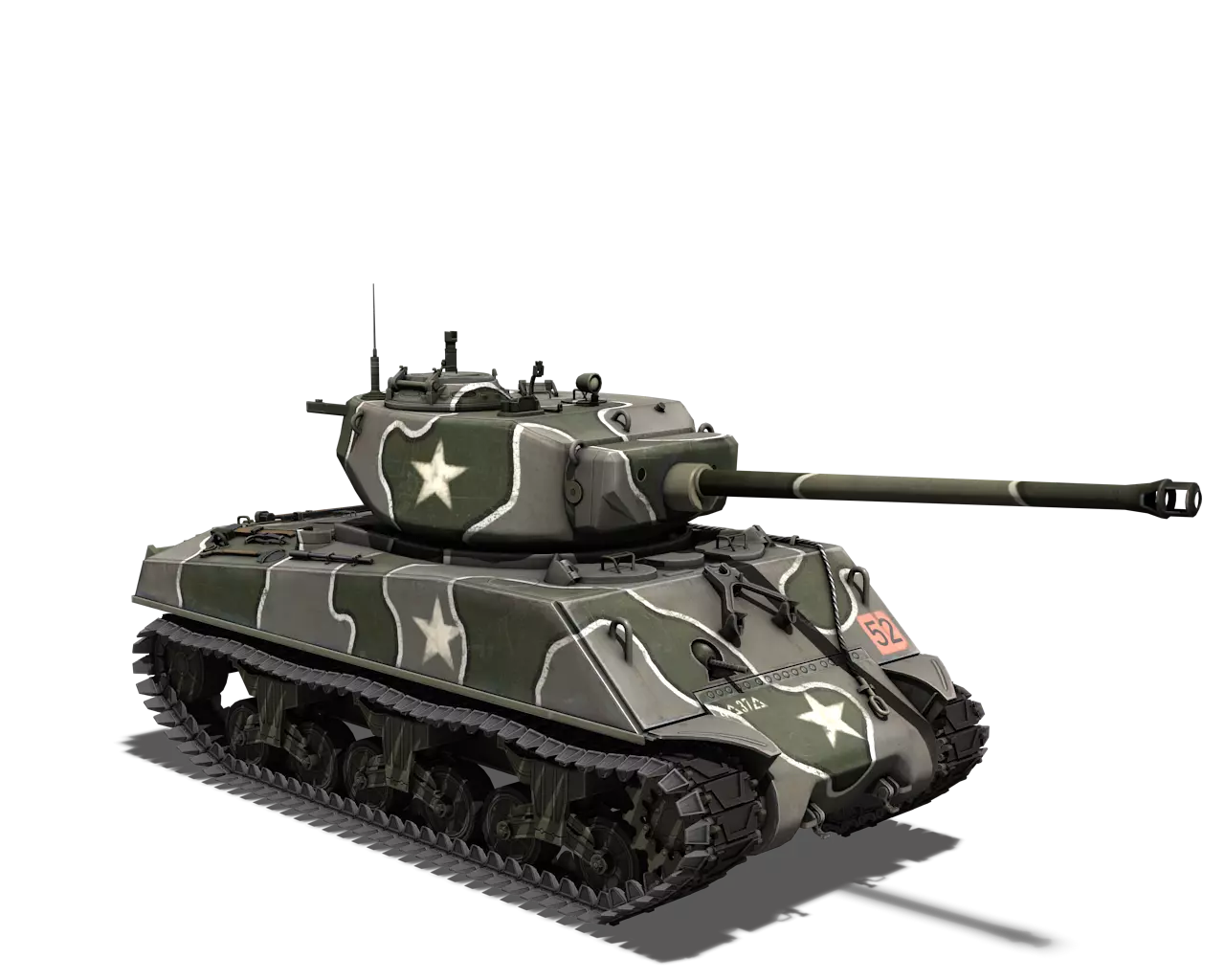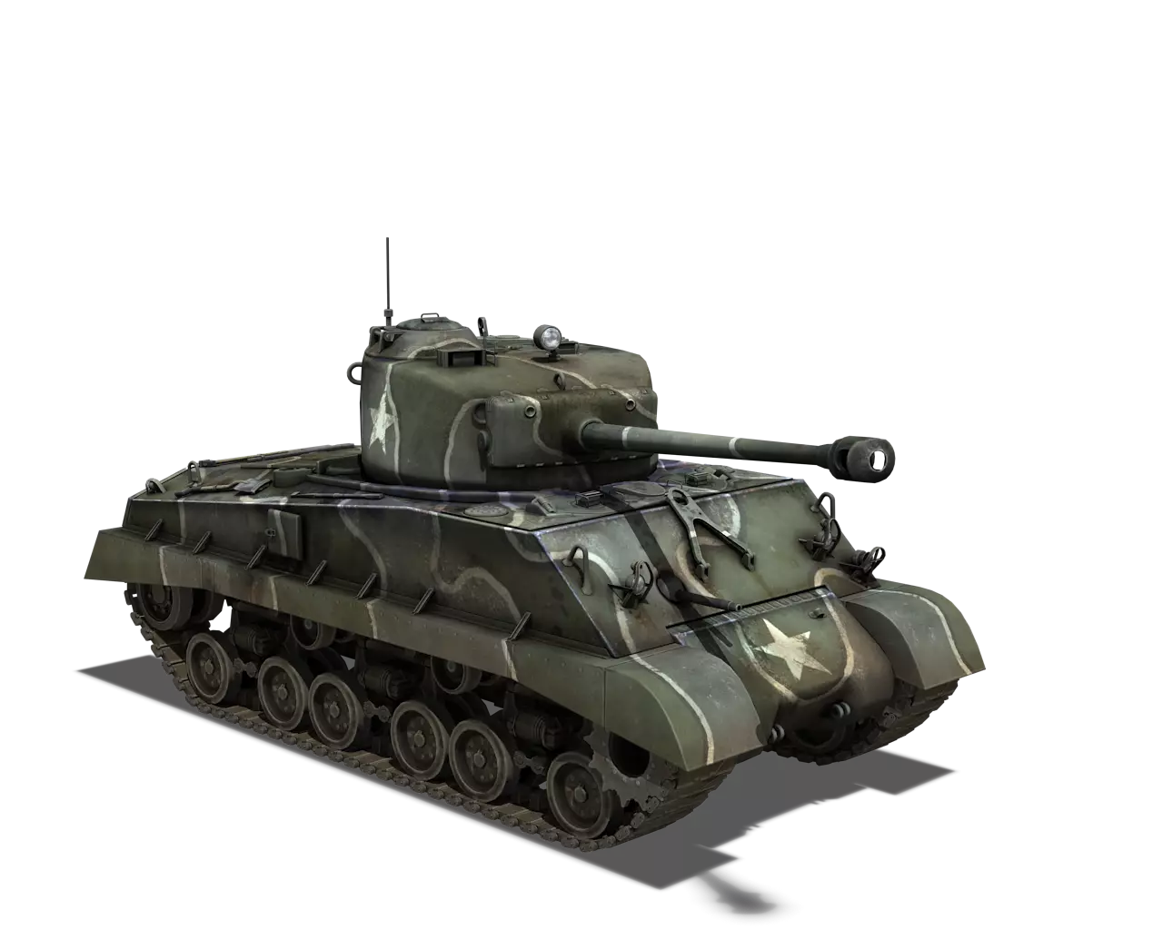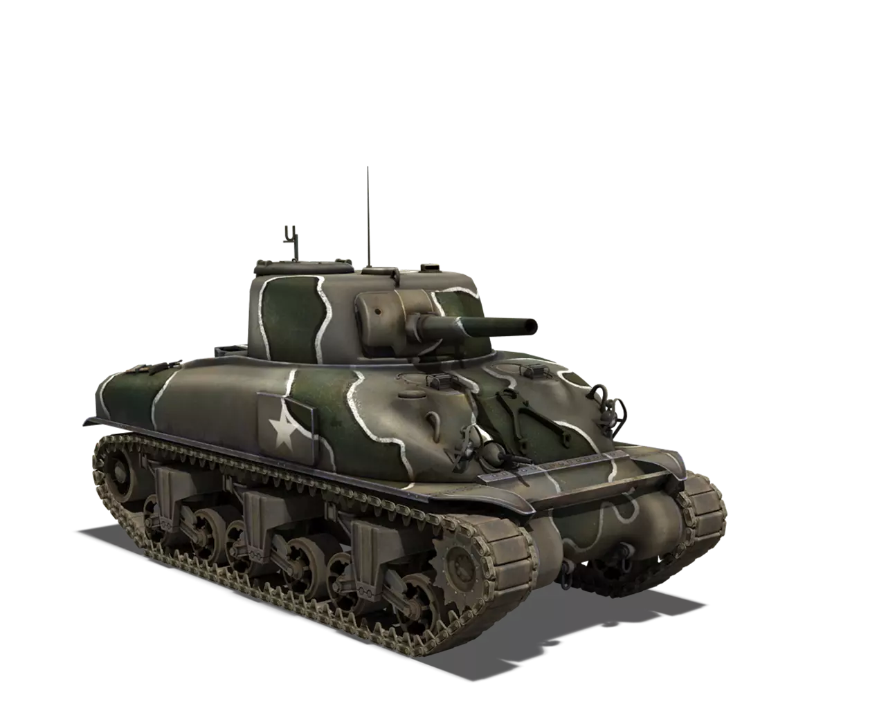 简短描述: 涂装效果相当普通,再次缺少其他自然色彩。不过,它通常是大多数美国载具可用的最佳涂装。 最佳使用场景:山地、城市 适用场景:夏季林地 不适用场景:秋季林地、开阔田野 个人战斗评分(1-5):3 价格:100,000 银币 或 400 金币 M4A1谢尔曼 原厂