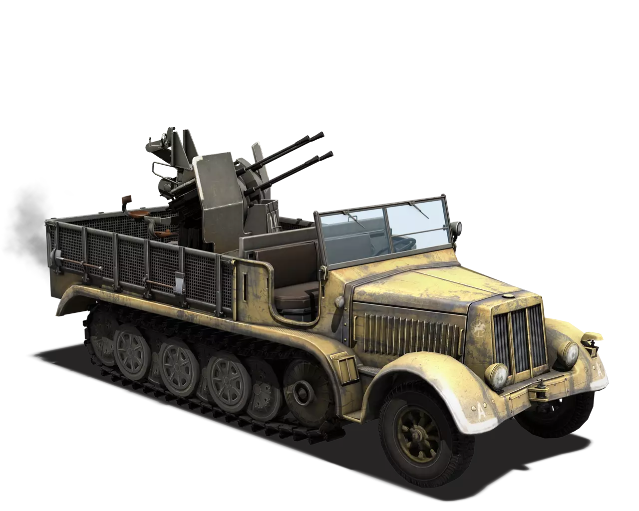 简短描述:这不仅是游戏中最糟糕的防空卡车,而且它的灰色比其他工厂涂装更亮。这使它成为整个游戏中最糟糕的涂装。建议不要购买这辆防空卡车,它真的很差。 最佳使用地点:城市 适用地点:山地 不适用地点:除城市和山地外的所有地方 个人战斗评分(1-5):1 价格:无 涂装颜色:浅橄榄色