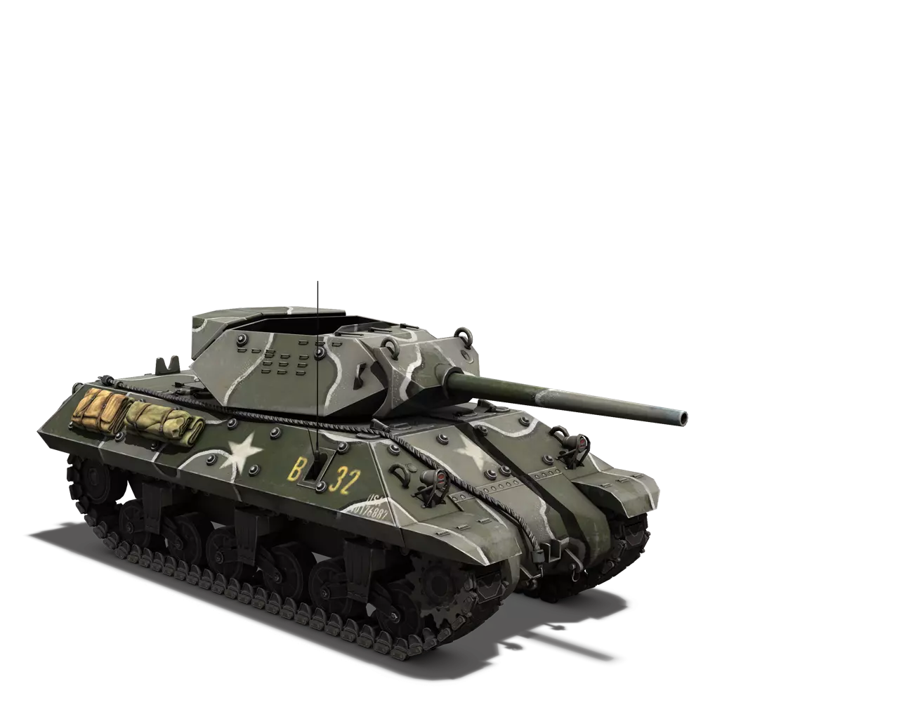 简短描述: 相当普通的涂装,再次缺少其他自然色彩。不过,它通常是大多数美国载具可用的最佳涂装。 最佳使用地点:山地、城市 适用地点:夏季森林 不适用地点:秋季森林、开阔田野 个人战斗评分(1-5):3 价格:100,000 银币或 400 金币 美国重型坦克歼击车涂装 M36 坦克歼击车 原厂