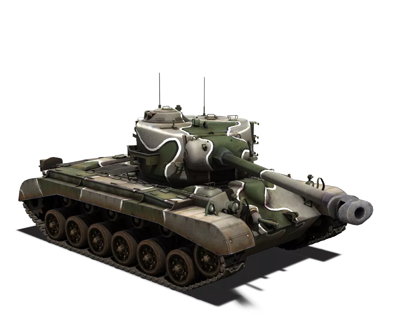 简短描述: 呃……还记得我说过工厂涂装缺少其他自然色彩吗?这款也一样。 最佳使用场景:城市、黑暗区域 适用场景:夏季森林、山地 不适用场景:开阔田野、秋季森林 个人战斗评分(1-5):2.5 价格:135,000 银币 或 540 金币 阿登四色迷彩