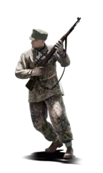 短描述:这是标准步兵迷彩。它的颜色非常浅,非常适合白天的山地战斗,但在夜间可能是最差的迷彩之一。为步兵购买新迷彩是必须的! 最佳使用地点:开阔地带 适用地点:山地、夏季树林、城市 不适用地点:秋季树林、黑暗区域 个人战斗评分(1-5):1.5 价格:无 军队: