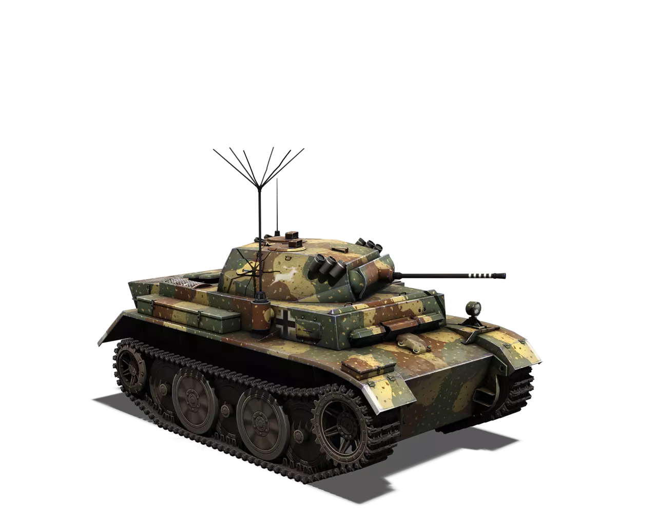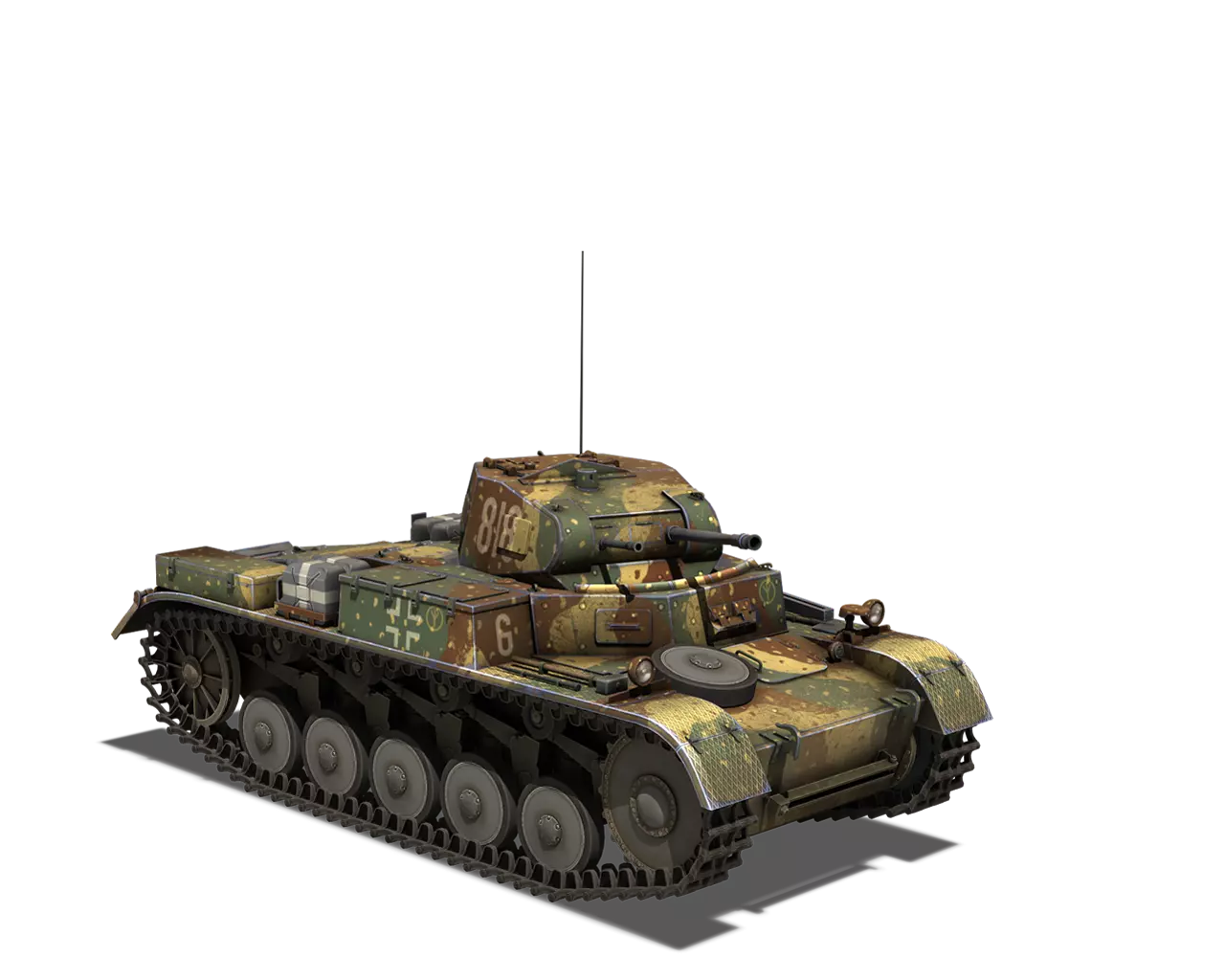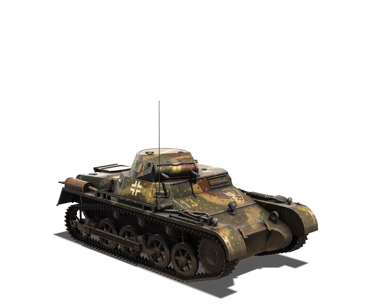短描述:非常适合伏击和侧翼包抄。 最佳使用地点:秋日森林 适用地点:夏日森林、开阔田野 不适用地点:城市 个人战斗评分(1-5):5 价格:130,000 银币或 520 金币 德国轻型坦克涂装 一号坦克 原厂