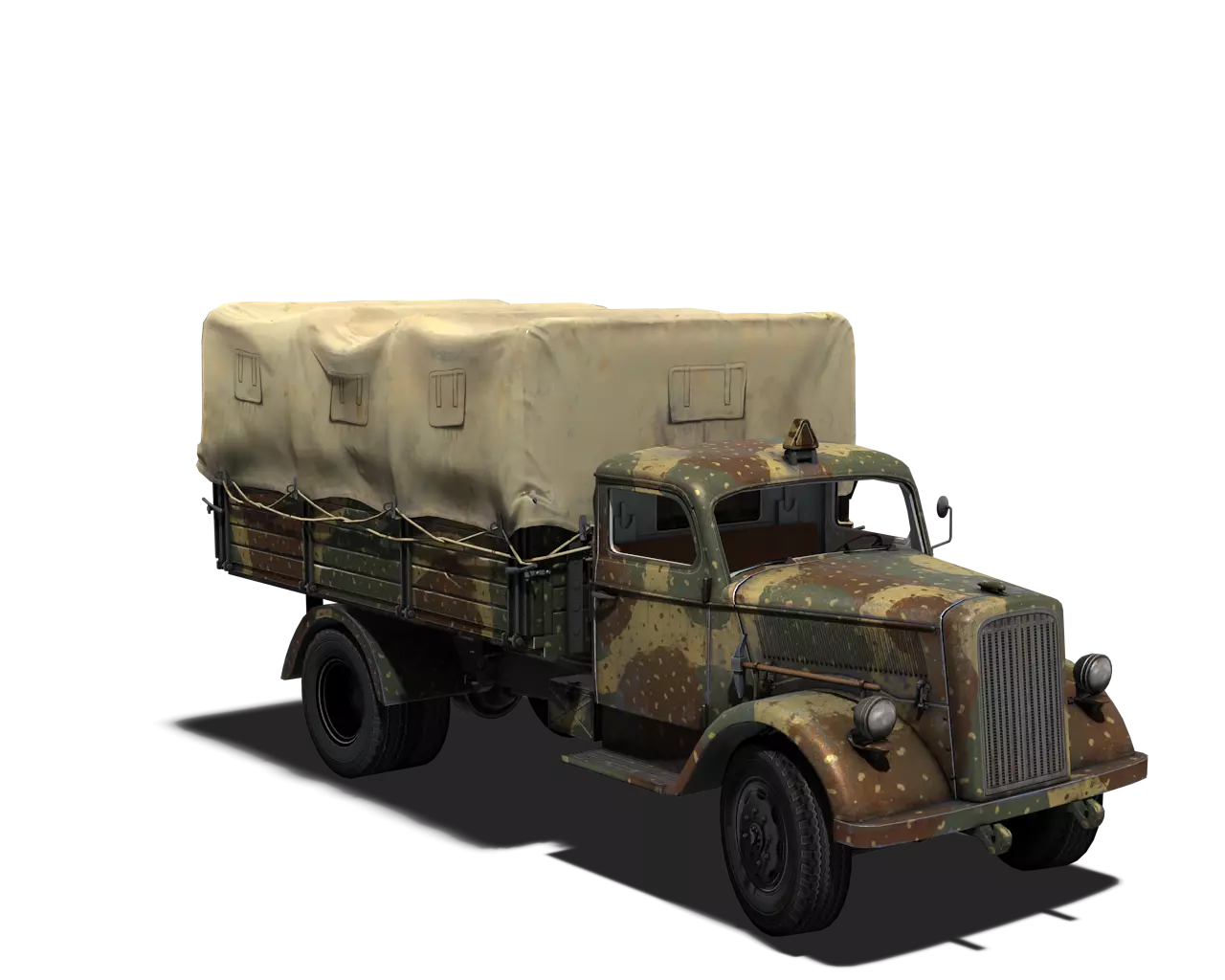 简短描述:最佳的AA卡车,带有出色的涂装,适合新手使用。 最佳使用地点:无 适用地点:夏季森林、开阔田野、城市、山地 不适用地点:秋季森林 个人战斗评分(1-5):2.5 价格:无 橄榄绿与黑色