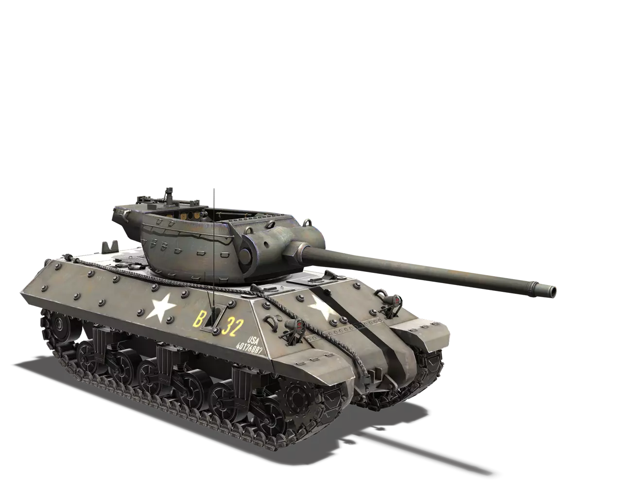 简短描述:相当普通的涂装,再次缺少其他自然色彩。不过,它通常是大多数美国载具可用的最佳涂装。 最佳使用地点:山地、城市 适用地点:夏季森林 不适用地点:秋季森林、开阔田野 个人战斗评分(1-5):3 价格:100,000 银币或 400 金币 美国重型坦克涂装 M4A3E2 谢尔曼“巨无霸” 工厂