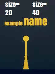 注意,在添加<sub>之前使用了</sup>来再次禁用它,否则文字会变得双倍小。 大小、旋转和宽度 大小以像素为单位,通过<size=[数字]>插入。关于大小需要注意的重要事项是,默认值约为45,任何超过72的数值都可能无法显示,从而破坏整个名称。以下是一些示例: