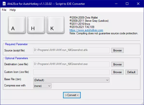 打开安装AHK的文件夹(默认路径为C: Program Files AutoHotkey),找到Compiler文件夹。运行Ahk2Exe.exe,编译第二个脚本。