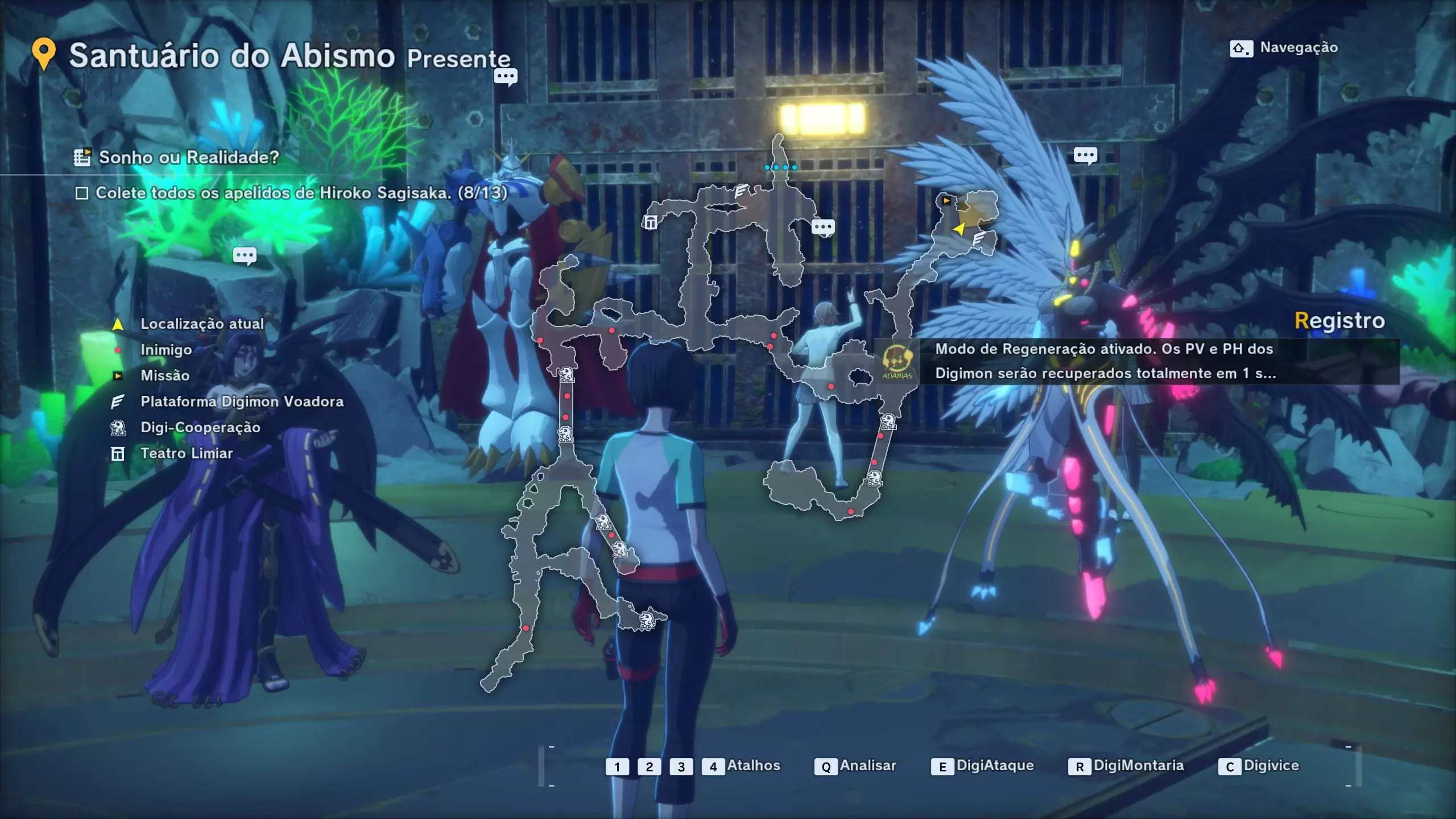 收集鹭坂裕子的所有昵称。鹭坂裕子的13个昵称均散布在数码世界中,涵盖现在与过去。为方便查找,请标记任务,从临界剧场的时间跳跃开始,数码世界中尚未找到昵称的区域将会被标记出来。