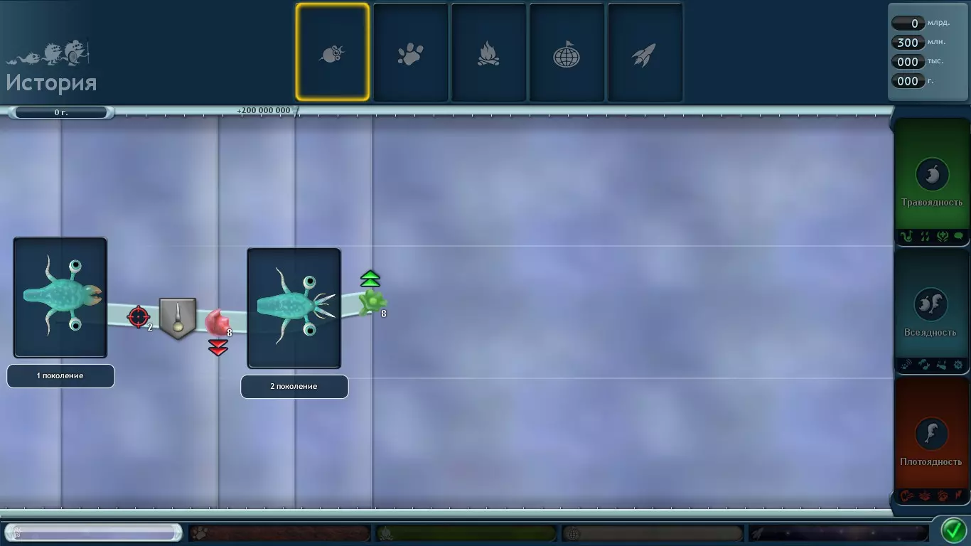 到这个阶段结束时,当我们准备好上岸时,会被赋予某种卡片。如果只吃植物,会获得【食草性】卡片;如果只吃肉类和生物,会获得【食肉性】卡片;如果两者都吃,则会获得【杂食性】卡片。 在游戏过程中,你可以点击左下角的【进化历史】按钮来追踪进度,了解自己正在朝着哪种卡片发展。