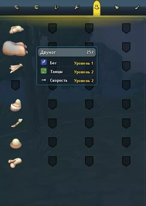 对于等级高于你的生物,击败它们不会掉落碎片,你必须达到它们的等级才行。 如果你遗漏了任何碎片,可以寻找包含该元素的陨石。 不能移除生物的眼睛,因为这样生物将无法看见,视野会极其受限! 此外,如果给生物两个加速器(即每个25点),属性会叠加,生物的速度会变得更快。
