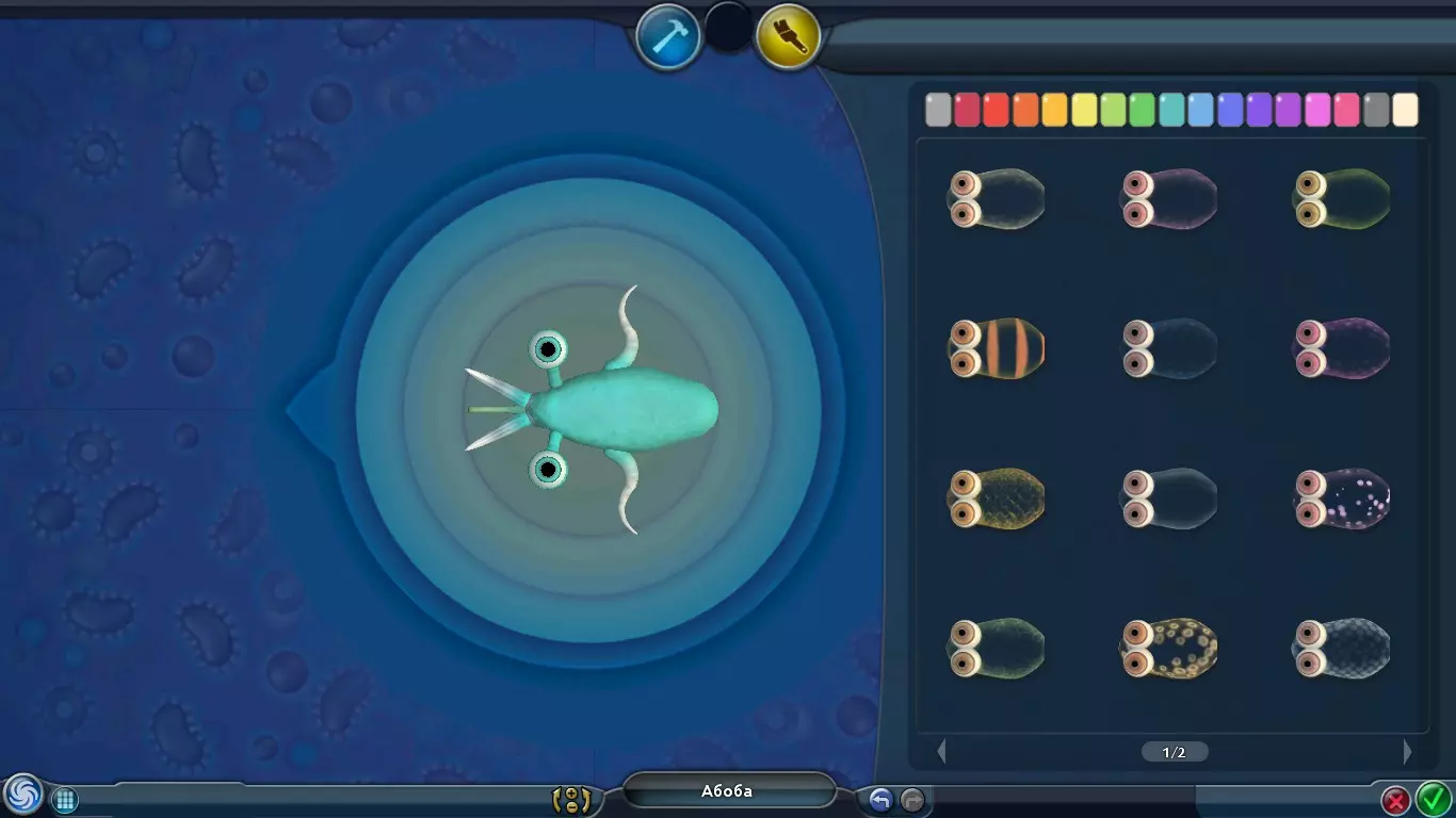 生物属性位于右上角。此外,还可以免费为生物染色和更改颜色,该选项卡位于屏幕顶部中央。