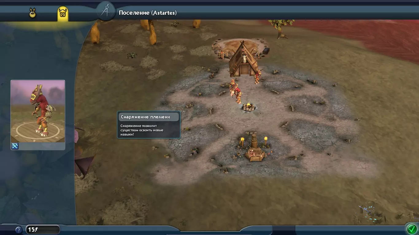 斧头在近战中造成相当高的伤害。三种武器中最好的是斧头,所以可以大胆地给所有生物配备斧头,然后去攻击其他部落。 此外,在这个阶段对生物进行自定义非常重要,生物自定义功能位于建筑选项卡旁边的下一个选项卡中。因为如果不给生物穿戴装备,部落将会输掉战斗。