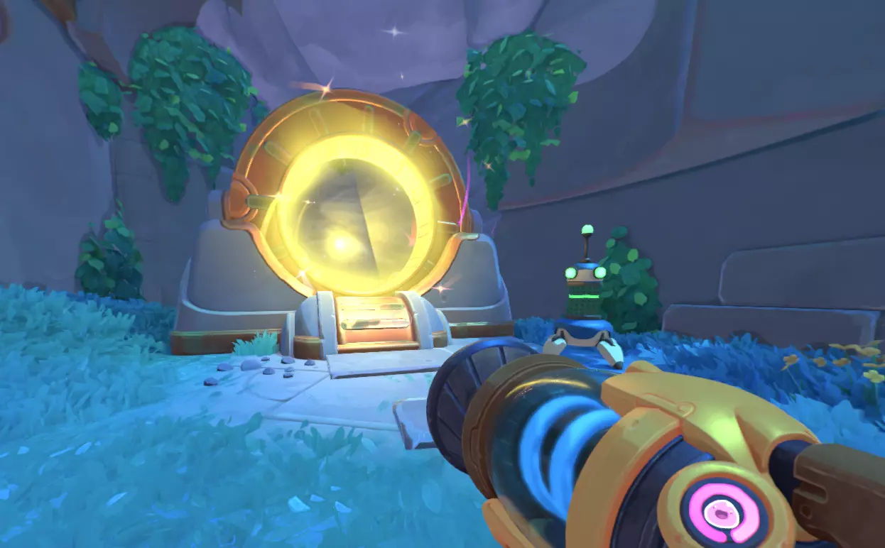 前往棱镜稳定器所在的位置。你需要找到靠近楼梯塔的那个稳定器,其顶部有暗影之门(棱镜稳定器外观为黄色螺旋状传送门)。