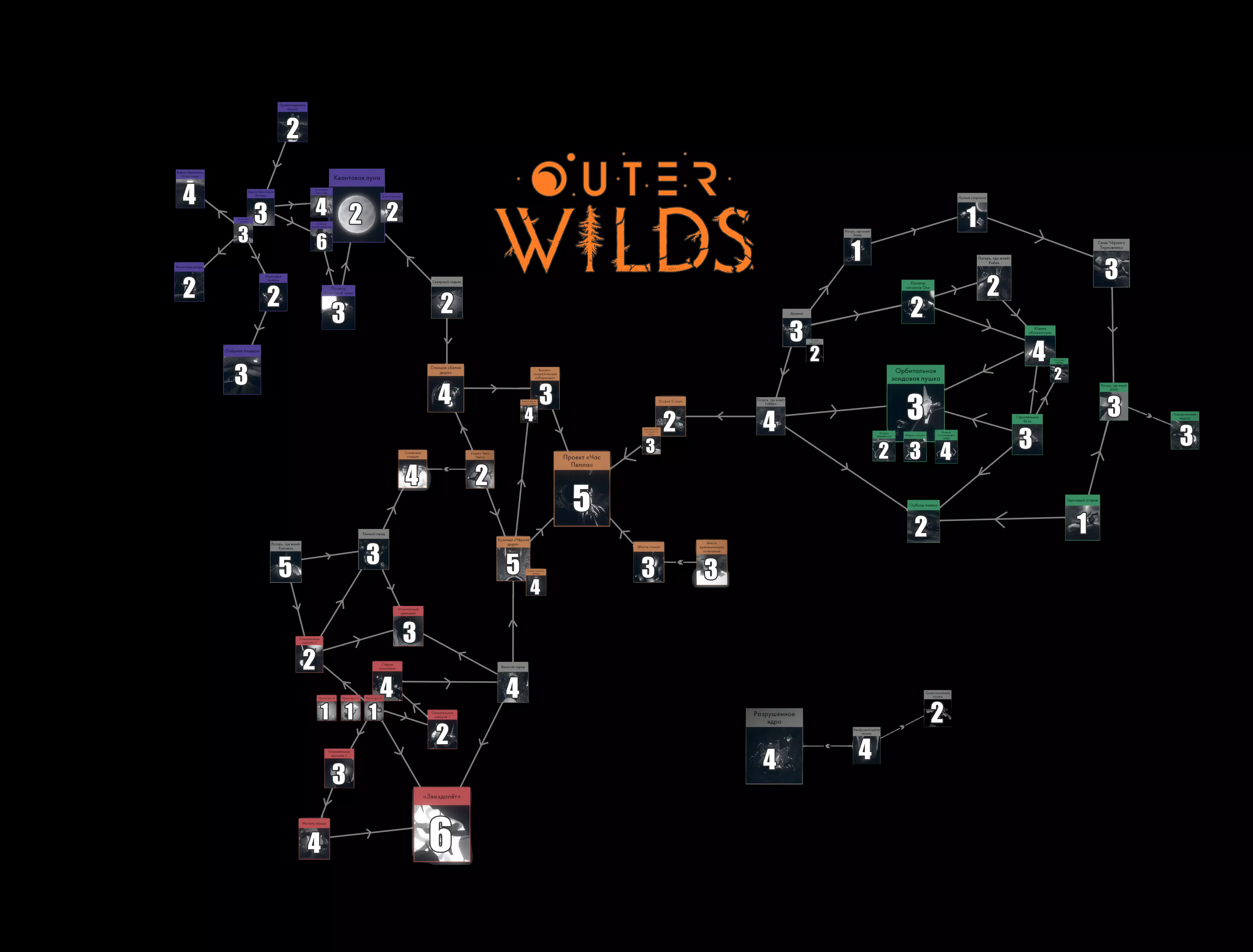 爬出来。 虚空灯笼: •火山试炼地点(3): 如何到达:在其中一座火山中可以找到诺玛伊人建筑,飞进去。最好在周期快结束时飞过去,那时岩浆较少。 红色 黑色荆棘: •救生舱3(3): 用信号镜寻找 •诺玛伊人坟墓(4): 从救生舱沿着火光走,如果把探测器扔进种子里,会正好掉到飞船上。【星舰(6)】:简而言之,需要在红色节点内找到特定节点。但在里面盲目摸索,而且那里有5个“钩子”,难度相当大。因此行动方案如下:寻找诺玛伊的坟墓,派探测器进入“种子”内部,前往红色节点,然后跟随标记前进。虚空球体: •救生舱1(2):容易找到 •旧定居点(4): 进入方法:到达时间越晚,虚空球体的入口就越多,进入后仔细探索。壁画(3个): 在虚空球体内部找到 煤之时刻: 救生舱2(2个): 不难找到 远古钓竿(3个): 获取方法:在暗城找到一个裂缝,从裂缝中可以看到钓竿(如果按常规方式进入,它会就在路上)。按照提示向裂缝中投掷探测器=手电筒,然后下到阶梯状洞穴中。接下来,根据侦察兵的标记,我们来到一个洞穴,洞顶会有光(我们的手电筒)照进来,进入后会发现一个有绞刑架的房间。仔细调查一下。 绿色区域 黑荆棘: • 沙帕特的营地(3): 进入方法:在黑荆棘区域用信号镜寻找(注意,不要在绞刑架附近使用)。进入第一个节点后,信号会同时从三个地方发出,我们还需要找到另一个节点。可以借助侦察兵来定位,但根据我的记忆,真正的【水晶】信号总是比其他光源稍微偏右/偏上。 •冰冻水母(3): 获取方法:与【水晶】对话,他会讲述关于自己飞船的事情。飞往钓竿营地的尾部方向,在某个时刻会看到蓝光。在飞船附近可以进入树内。进入后,找到水母,记得进入水母体内。巨人的深渊: •荆棘岛(1): 不难找到,这里简直就是一座长满荆棘的岛屿,岛上还有水母,以及一些有趣的笔记,但似乎这些并非必须探索的内容。 •建筑基地(3): 很容易找到 •海洋深处(2): 进入方法:运用我们已有的知识,飞入逆时针旋转的漩涡(如果忘记了,就飞入那个与大多数漩涡不同的漩涡)。到达核心处后,离开船只并游进水母内部。小心,向左一步,向右一步——触电攻击。穿过电场后——出来。你已到达目标。 •探测器跟踪模块(4): 巨人深渊内唯一的建筑。移动球体时,别忘了阅读弹出的说明。轨道探针炮(就是每个循环开始时看到的那个装置): •轨道探针炮(3)(惊人): 在循环开始时快速起飞,接近巨脉冲时就能撞上,很容易达成。 •控制模块(2): 炮内有三个通道,找到正确的那个。 •发射模块(3): 也在这里,但需要从炮的外部进入。