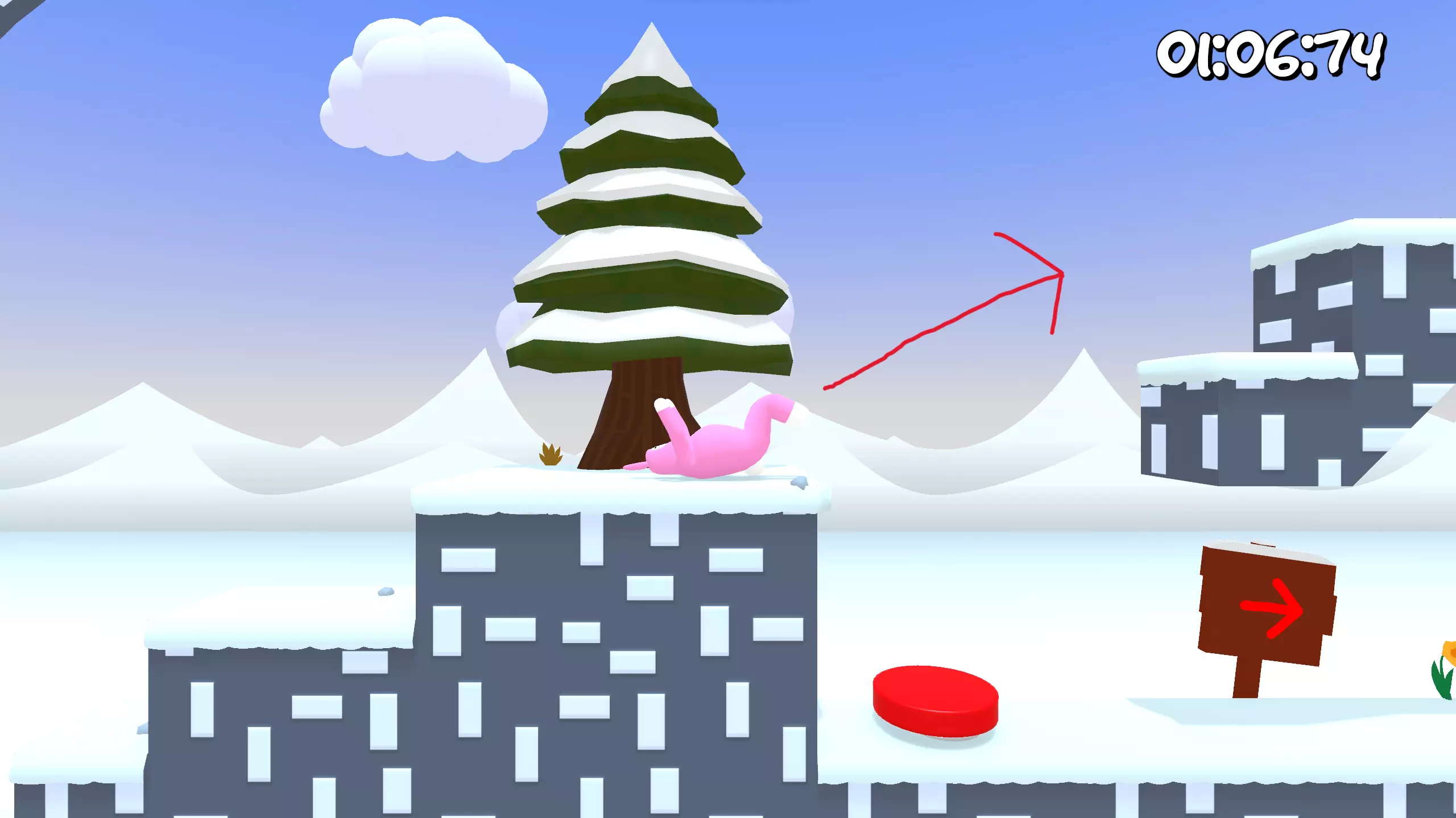 第9关 这里不需要跳到按钮上。向前走并拿起胡萝卜。