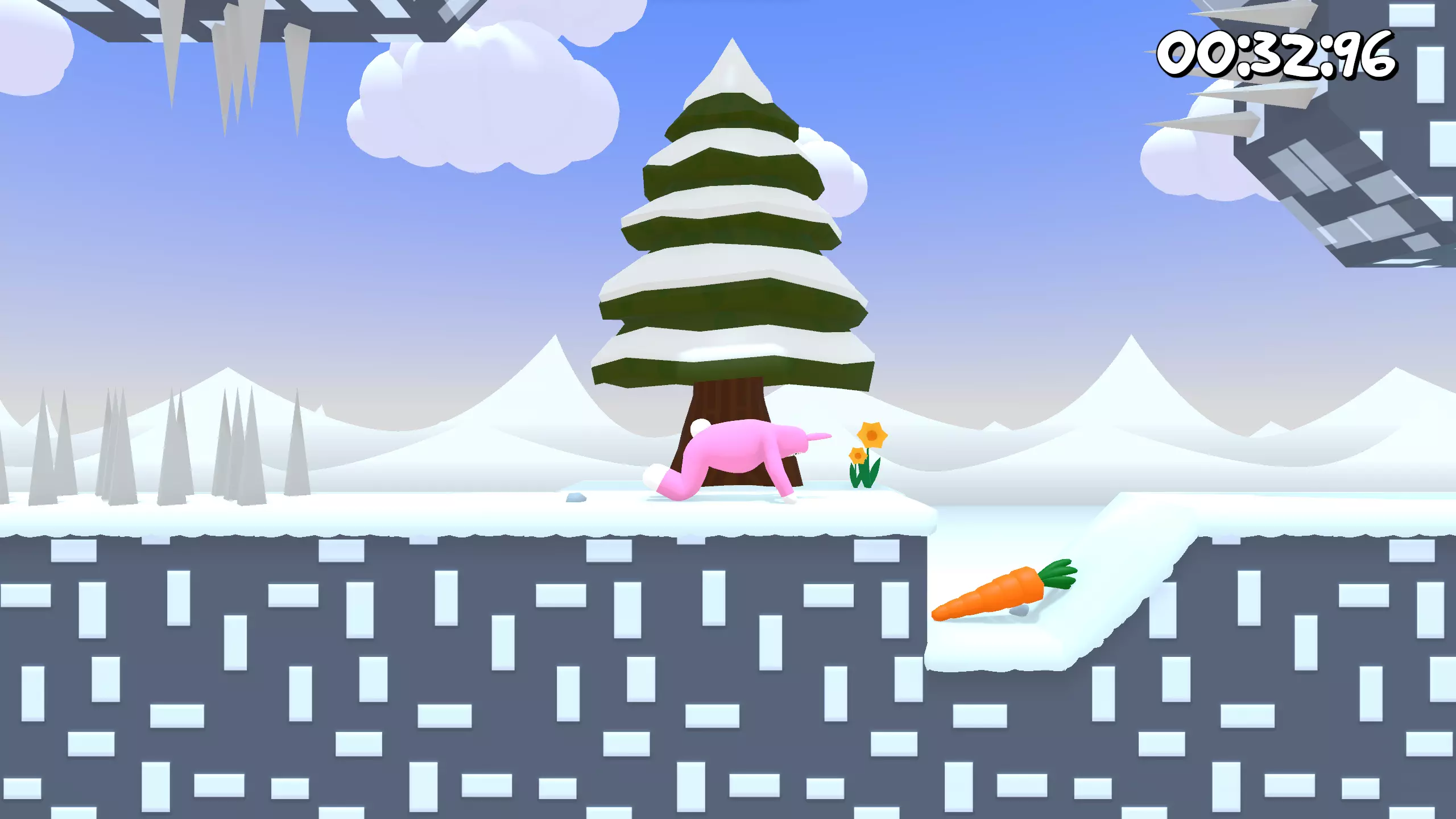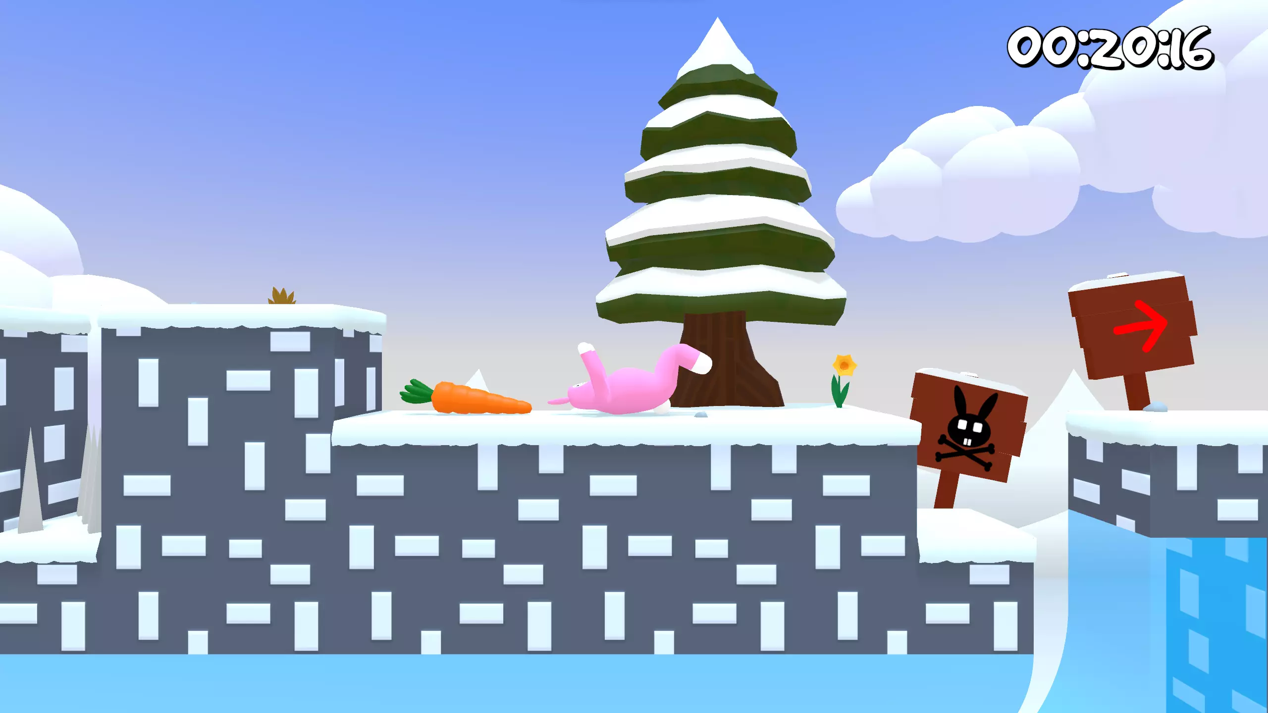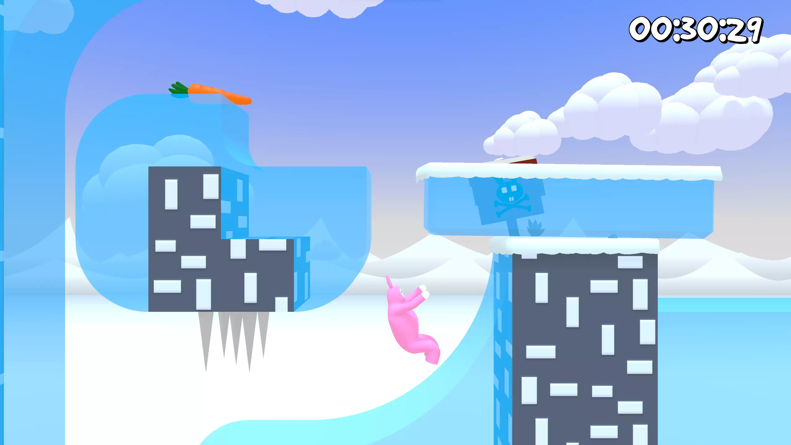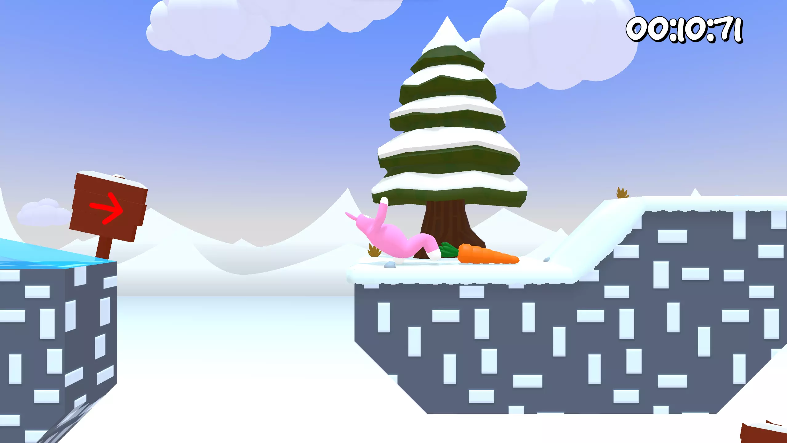 第11关 胡萝卜几乎就在起点位置。只需加速并跳到平台上即可。
