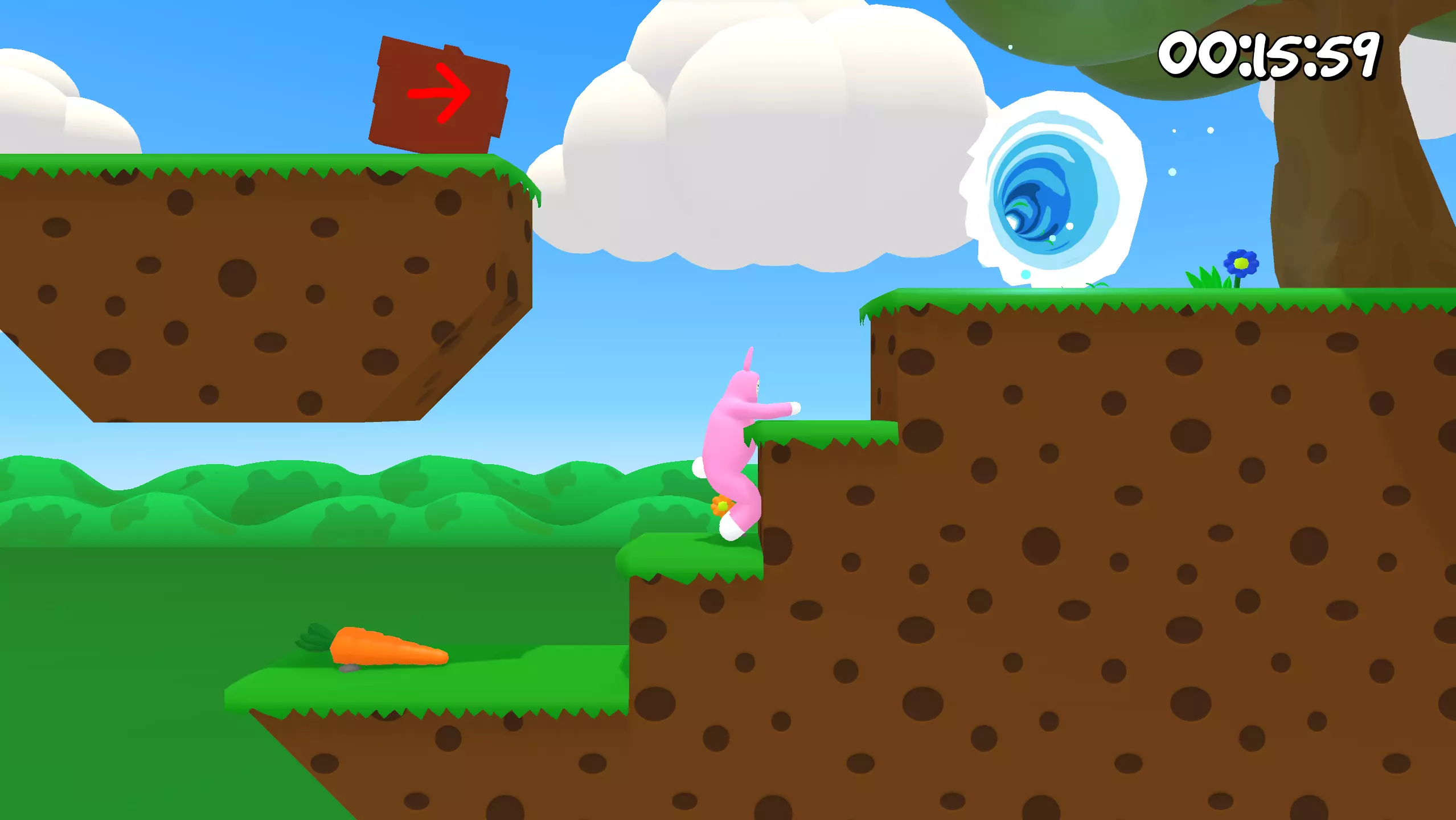 第3关 这里的胡萝卜也藏在传送门后面。再次跳过传送门并拿起胡萝卜。