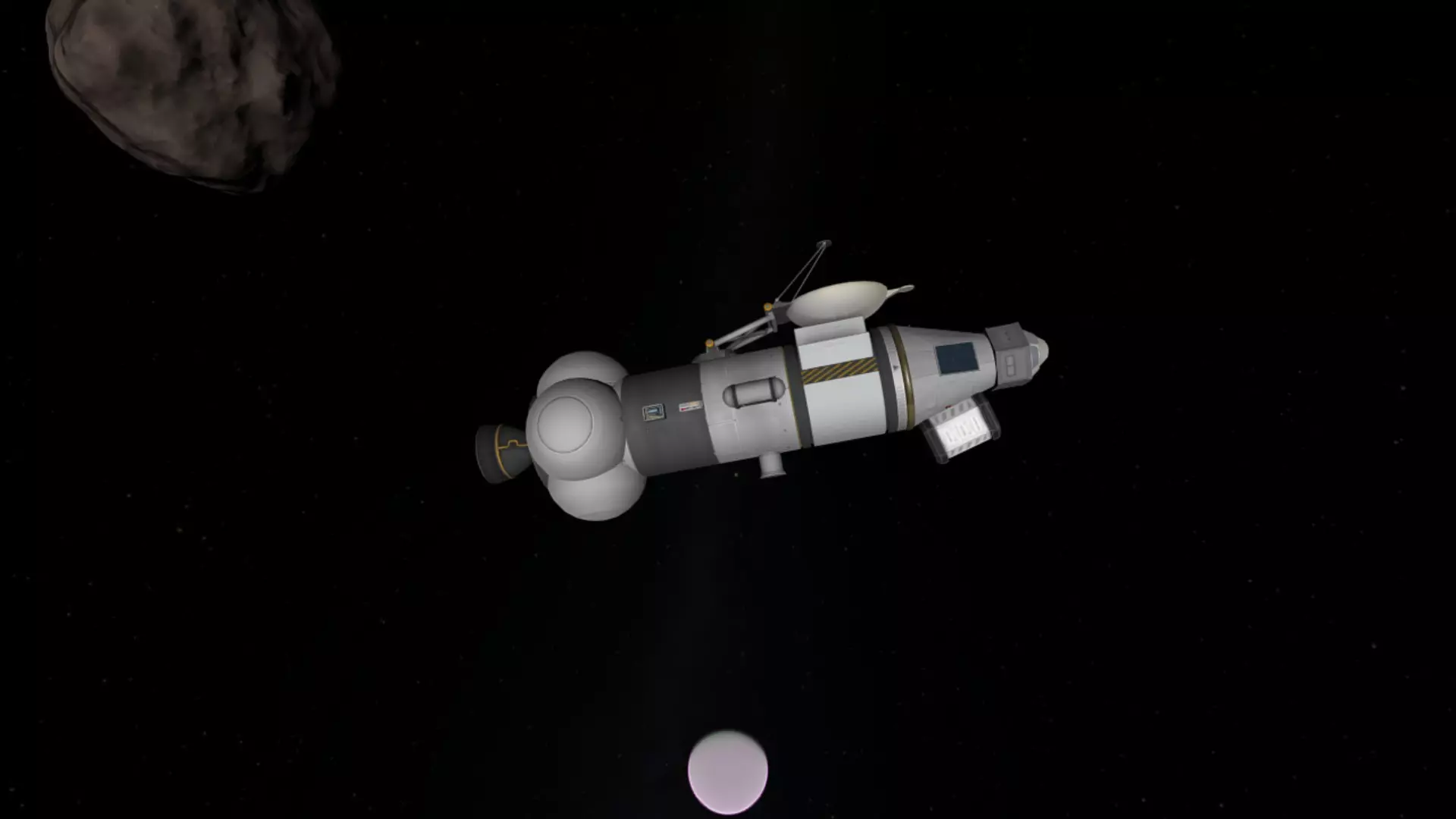 还有更多! 模组依赖: (KSP Burst) (Kopernicus) 模组页面: (Parallax Continued) 【荣誉提及】 这些是可以添加到核心模组中的一些点缀,你可以根据自己的喜好混合搭配。 以下顺序不分先后,随机排列: Distant Object Enhancement:增加可查看物体的距离,且可自定义,还能在行星位置显示点和文本。在太空中能看到所有行星的位置,这是个不错的小细节。它还会使天体周围背景中的星星变暗,为太空增添了更多真实感,这就是指南中一些后期截图里星星消失的原因。截图中的光点可能有点难以看清,但在游戏中你会看得更清楚。