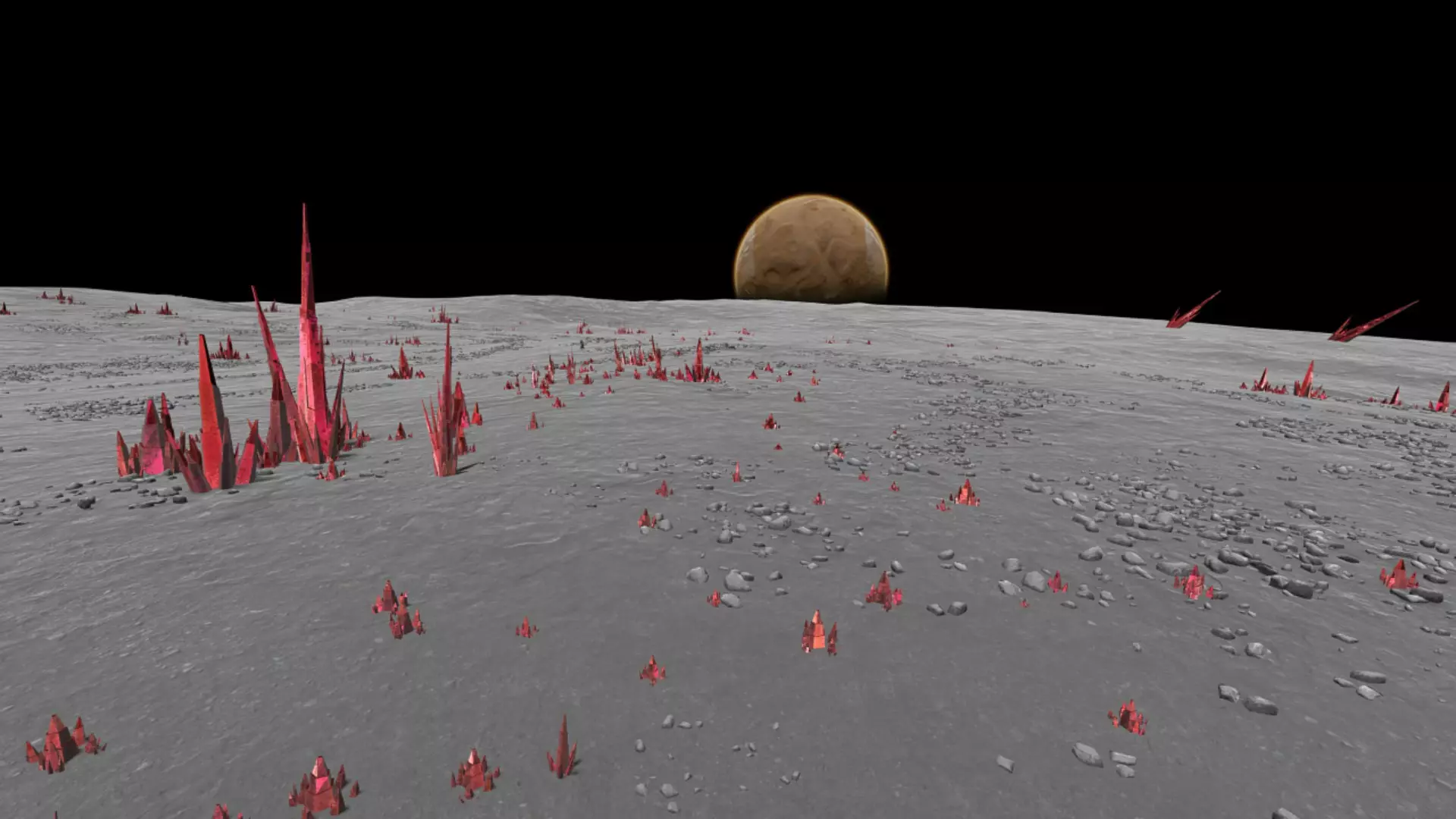 然而,与这里的其他模组不同,体积云是一个付费模组,需要通过Blackrack的Patreon订阅才能获取。虽然这有点让人难以接受,但它的价格确实不高。如果你仔细寻找的话,确实有其他免费获取体积云模组下载的方法……但我可没告诉你这些,我对此一无所知。3) 视差模组 Gameslinxs的视差模组,尤其是新的“Continued”版本,表现非常出色。它为坎巴拉星系注入了更多生机,大幅翻新了几乎所有行星和卫星,使它们的外观更加精致,表面也充满了有趣的地貌特征和构造。如果你愿意,还可以开启碰撞选项,这能为特定地点的着陆准备和管理增加另一层深度。 视差模组的一大优点是支持自定义,你可以调整散射数量、光照等设置。视差效果的唯一缺点是,没错,它通常比较耗费资源(不过你可以调整设置),如果你的电脑或网络速度较慢,安装过程会花费不少时间,最后一点是,散射效果可能会遮挡或隐藏一些原版功能,比如可收集的岩石之类的东西,所以如果你要执行 Mun 岩石收集任务,最好关闭或调低散射效果。 对比:原版 VS 开启视差效果(从太空视角)