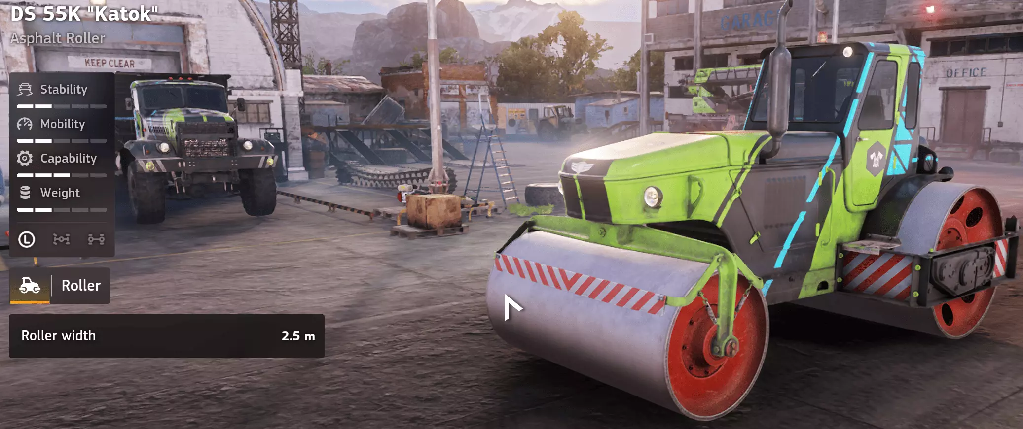 价格:18,000 评分:2/10 类别:道路工程/压路机 优点 体型小巧,便于运输。 价格低廉的入门级压路机。 理论上可以完成压路任务。 几乎能适配任何运输车辆。 缺点 碾压宽度极窄。 前后轮均为碾压轮,导致牵引力不足。 在实际道路工程中进度缓慢。 在不平整或松软地形上作业困难。 很快会被淘汰。 单人实用性:2/10 在单人模式中,Katok纯粹是浪费时间。虽然它能压路,但极小的宽度意味着即使是小型工程也会耗费远超必要的时间。任何地形不平整都会让施工进度雪上加霜。 多人实用性:3/10 在多人模式中,它的价值略有提升,因为可以让一人操作它,而其他人去做更重要的工作。即便如此,更好的压路机几乎会立即成为首选。 游戏玩法说明 仅用于非常小型或游戏初期的压路任务。 避免在松软地面使用,牵引力较差。 一旦有更好的压路机可用,立即更换。 运输它很容易;但有效使用它却并非易事。 评价 DS 55K“Katok”确实存在,但很少有使用它的正当理由。其小巧的尺寸和低廉的成本无法弥补效率上的巨大损失。适合学习机制,不利于实际发展。 Aramatsu Bowhead 20T Aramatsu Bowhead 20T