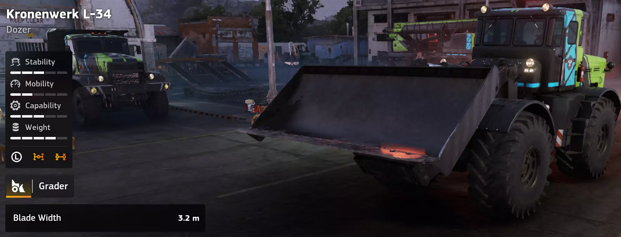价格:20,000 评分:9/10 类型:道路工程/自卸卡车 优点 就其效能而言价格非常低廉。 出色的离地间隙和越野能力。 与大型自卸卡车相比机动性更高。 在崎岖和破损地形上表现可靠。 是中小型道路工程的理想选择。 缺点 与大型自卸卡车相比沙料容量有限。 大规模铺路时需要更多趟次运输。 倒车速度非常慢。 解锁贝加尔(Baikal)后会显得不够出色。 单人实用性:9/10 在单人游戏中,泰加6455B是一款出色的早中期自卸卡车。其低成本、强大的越野性能和可靠性使其成为解锁更大车型前道路建设的最佳选择之一。多人游戏实用性:8/10 在多人游戏中,它作为辅助运输工具表现出色,尤其当多名玩家向摊铺机输送沙子时。虽然其原始容量不及贝加尔(Baikal),但灵活性使其仍具实用性。 游戏玩法说明 【最适合短途运输】 【避免依赖倒车,规划好掉头路线】 【在大型卡车难以通行的崎岖地形表现良好】 【理想作为贝加尔(Baikal)的辅助自卸卡车】 评价 泰加6455B自卸卡车的表现远超其价格。虽然无法与贝加尔(Baikal)的原始容量相比,但其可靠性、机动性和低成本使其成为游戏中最全面的道路工程车辆之一。这是一款出色的主力车型,其实用性比预期更持久。 克朗恩沃克L-34推土机