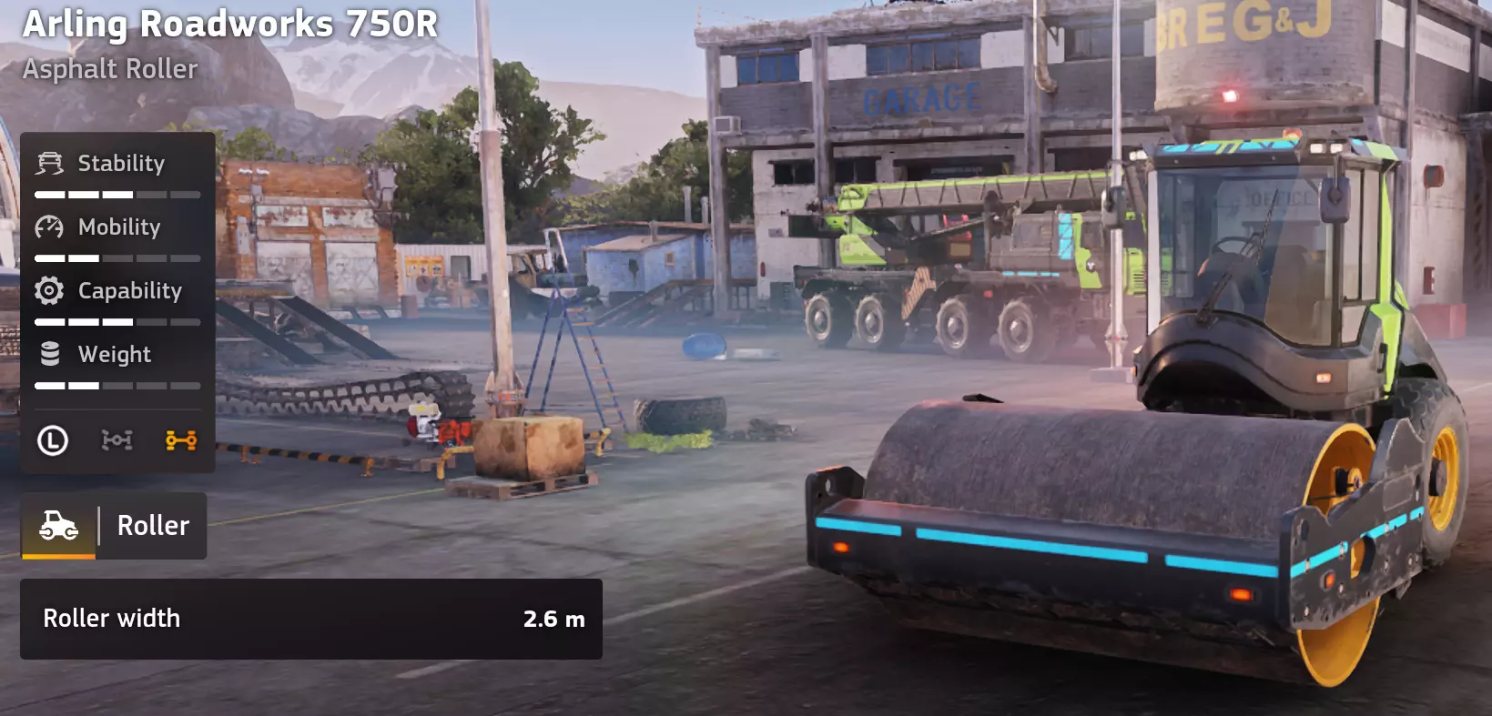 价格:28,000 评分:7/10 类别:道路工程/压路机 优点 相比初始选项,是升级后的压路机。 差速锁始终启用,减少陷入困境的几率。 带抓地力的后轮比双滚筒设计提升了牵引力。 在崎岖地形上比小型压路机更可靠。 一旦定位正确,通常表现稳定。 缺点 体积大,运输不便。 头重脚轻,在拖车上容易倾翻。 价格昂贵,但改进幅度不大。 因其尺寸,难以用Zikz运输。 单人实用性:7/10 在单人游戏中,750R是一款功能尚可但效率不高的压路机。它能完成工作,且比小型压路机更少出现停滞。 多人实用性:7/10 在多人游戏中,得益于队友负责运输和路线准备,它的表现会更好。不过,与更出色的自卸车和推土机组合相比,其缓慢的作业进度限制了它的整体影响。 游戏玩法说明 小心运输,它的尺寸和重量会让回收工作变得很麻烦。 比Katok更可靠。 评价 Arling Roadworks 750R是一款不错但并不出众的压路机。它能正常工作,稳定性也足够,比最小型的选项要好,但狭窄的碾压宽度和尴尬的尺寸使它无法变得出色。可以使用,但很少令人兴奋。 Arling Roadworks 120 Special Arling Roadworks 120 Special