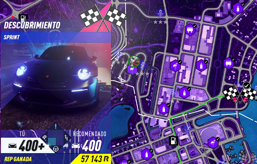 使用性能等级为399的车辆赢得一场比赛 正如所说,我们需要使用性能等级提升至+400的车辆赢得一场比赛。 同样,我们需要达到50级才能解锁最佳零件,也才能解锁终极零件和终极+零件。 和之前一样,我推荐... 保时捷911 Carrera(1973),因为这辆车总体来说是游戏中最好的,几乎可以帮助你获得所有其他成就。 科尼赛克Regera(2016)。这辆车已经具备+400的性能提升和终极+零件,也需要它来完成A toda velocidad成就。 A toda velocidad